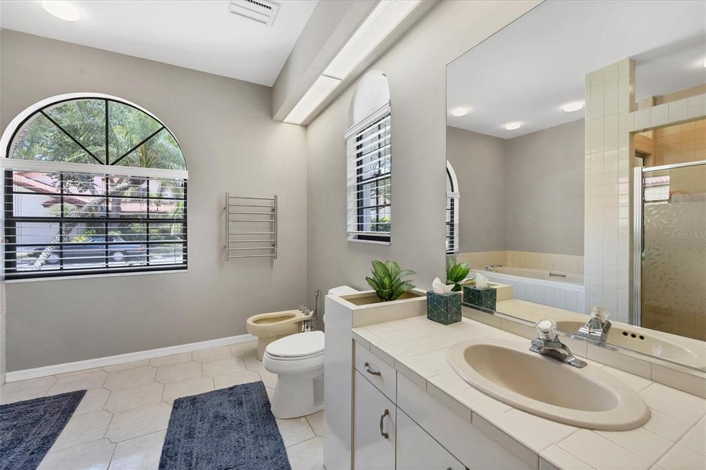 It’s florida living at its best! experience the wow factor when stepping through the front door of this stunning villa in the prestigious prestancia community. new roof january 2025! this sought-after home in villa d’este features a sunny open floor plan with soaring ceilings, natural fireplace, dining room and great room with wet bar ideal for entertaining. spread out in this spacious three-bedroom, three-bath home that boasts large rooms and two primary suites to relax in with new custom finished walk-in closets and en-suite baths. first floor features two bedrooms for easy living. stairway with new custom runner leads to a loft area and private second primary bedroom suite. large cook’s kitchen with newer stainless appliances, corian countertops and white cabinets complement the open airy décor of the attached family room. indoor outdoor living is a breeze with sliding glass doors that lead to the lanai overlooking the semi-private new patio which is just steps to the tranquil pool. freshly painted two-car garage with custom finished floor leads to the laundry room with a new washer and dryer. two new air-conditioning units and r40 insulation in the attics. enjoy all the amenities of living in this prestigious gated community including optional membership at tpc prestancia golf club featuring two 18-hole courses.7242 VILLA D ESTE, SARASOTA, FL 34238