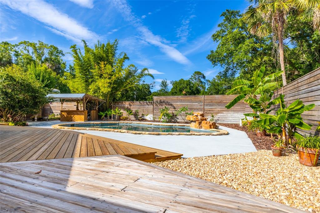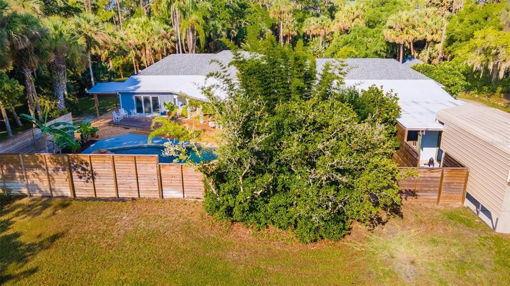 Privacy, seclusion and nature - yet in the midst of nsb! country living in the city! this unique custom built pool home sits privately and secluded on just over 5 park like acres in the heart of a town, conveniently located about 1 mile to publix or 1.5 to canal street and a short hop over the bridge to the beach. built in 1995 to accommodate a growing family, this has been a haven for owners and wildlife ever since. with nsb growing all around, this gated estate (which is in county zoning) still affords peace and tranquility in the midst of it all. the 3 bedroom, 2.5 bath house has a spacious, airy layout that is geared toward capturing the outside views, with plenty of skylights in the high ceilings and new impact windows and sliders. there is an extra office space and large laundry room inside the house with an additional office and flex room on the other side of garage. the back of the house opens to a large covered porch and deck to the partially fenced pool area. in addition to the two car garage in the house, there is a carport that can store more vehicles or boats and also a separate workshop/extra garage. a large cleared backyard affords opportunity for rv or boat storage, a potential barn or cottage, or just a nice peaceful lawn.725 INGHAM, NEW SMYRNA BEACH, FL 32168