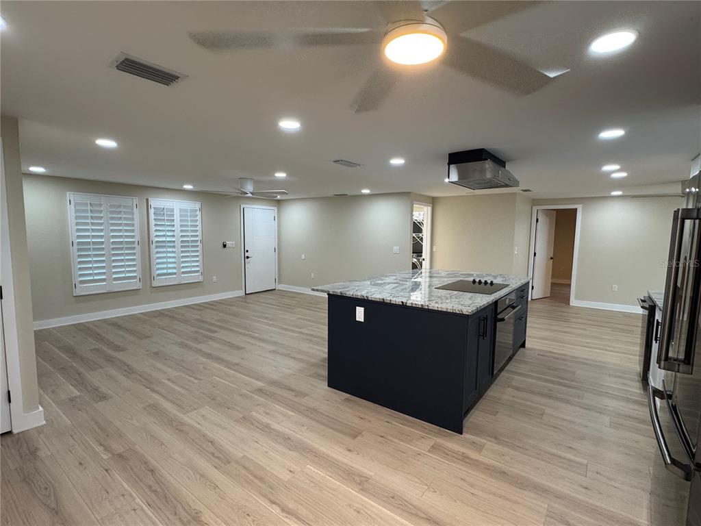Split Bedroom Walk-In Closet(s)Ceiling Fan(s) Eating Space In Kitchen Living Room/Dining Room Combo Stone Counters Thermostat Open Floorplan Window Treatments Primary Bedroom Main Floor Kitchen/Family Room ComboExterior Features: