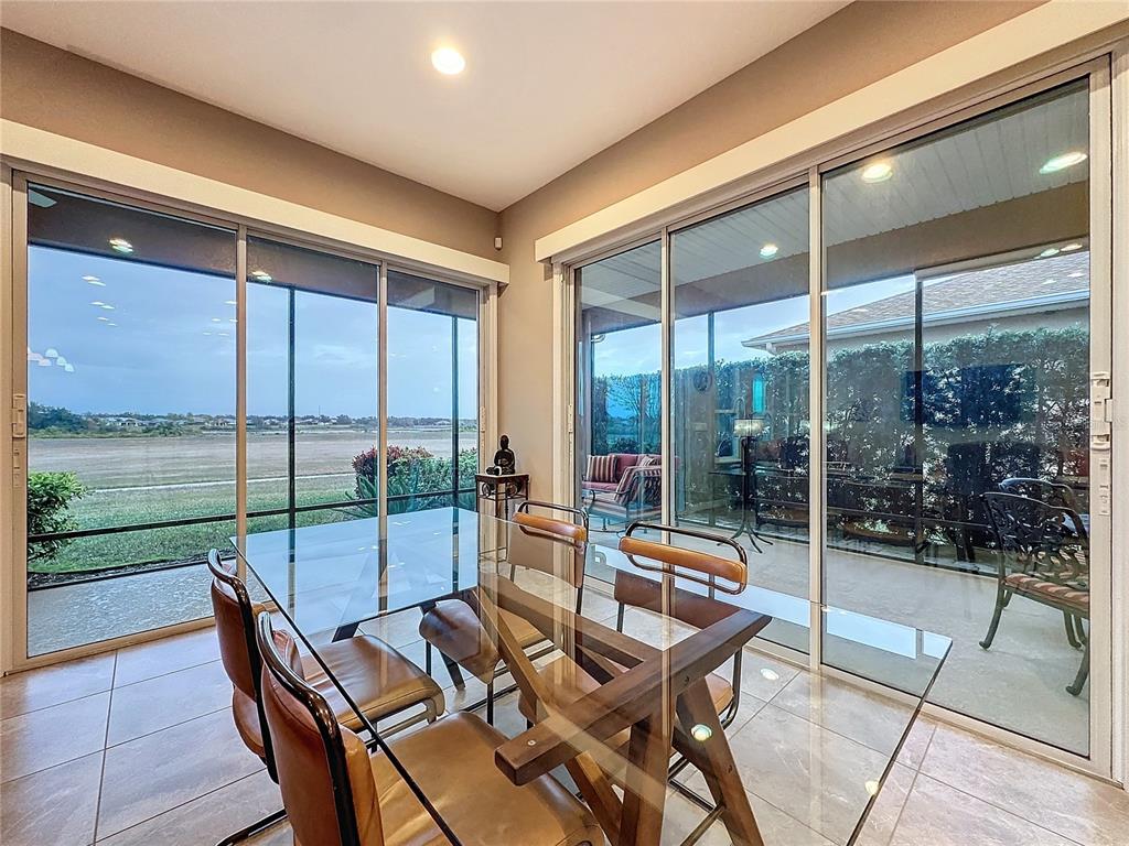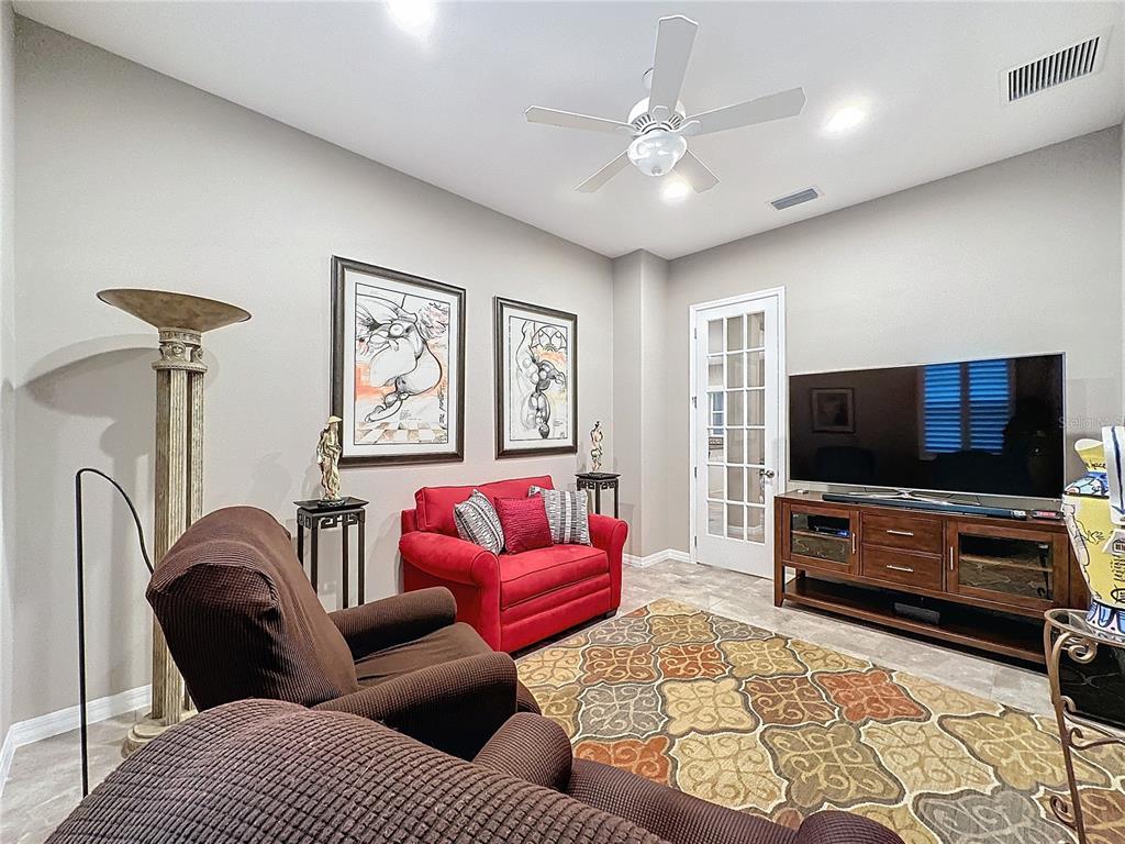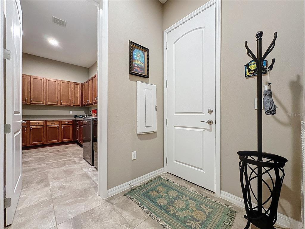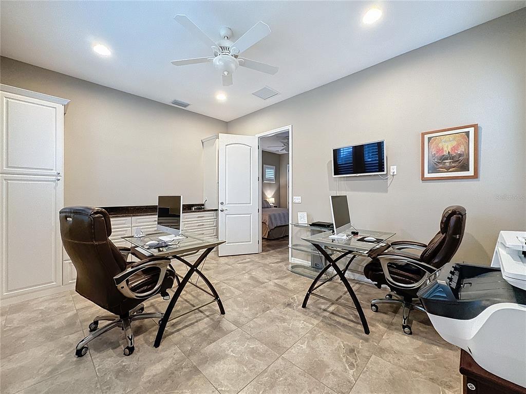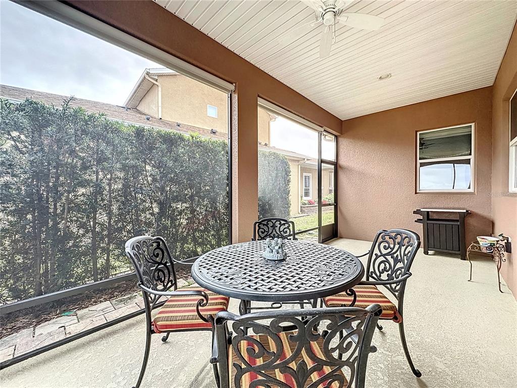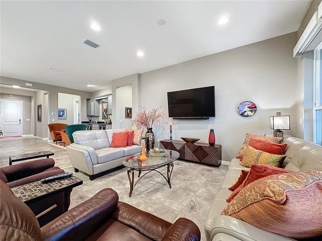 Welcome to this meticulously maintained 2-bedroom, 2.5-bathroom home, nestled on a premium conservation home site offering unparalleled privacy and scenic views. located in the highly sought after, active adult, resort style community, trilogy, this home combines elegant design with thoughtful upgrades and functional living spaces. a true chef’s dream, the gourmet kitchen boasts upgraded silestone countertops, custom cabinetry, and premium appliances. perfect for culinary creations and entertaining. 2 spacious bedrooms, including a luxurious primary suite with custom cabinetry and countertops. a versatile hobby room and a den provide plenty of options for work, play, or relaxation. 2 full baths and a half bath, featuring upgraded silestone countertops and high-end finishes. the home is adorned with ceramic tile throughout, drywall bullnose edges, and ceiling fans for added comfort. enjoy climate control with a mitsubishi mini-split ac system in the front rooms, as well as an hvac system with a transferable maintenance plan, paid through december 2025. the extended, screened lanai offers a peaceful space to unwind while overlooking the lush, private conservation area. throughout the home, you'll find custom cabinetry and countertops in the primary bedroom, guest bedroom, bar area, hallway nook, and even the garage, adding a touch of luxury and functionality. you will find decorative wood shutters in the guest room, hobby room, primary bedroom, bathroom, and entryway, plus an additional refrigerator in the garage for extra storage. this home is a true gem, offering both beauty and practicality. perfect for those who appreciate luxury, privacy, and attention to detail. don't miss the opportunity to make this exquisite property yours!729 ALCOVE, GROVELAND, FL 34736