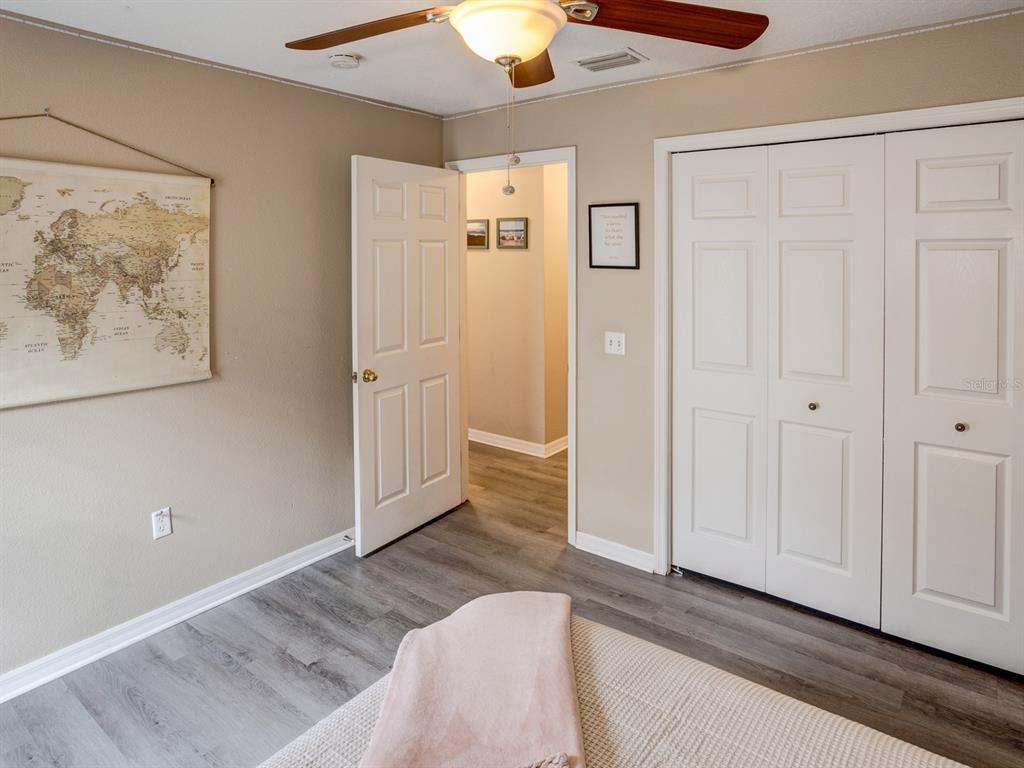 Make an offer on this investment property! currently rented until may 2026 at a monthly rate $2,400.00. great home, great location, terrific price in a desirable gated community in christina hammock – south lakeland. this beautifully maintained 3-bedroom, 2-bathroom home offers 2,001 sq. ft. of heated and cooled living space. with no carpet—only luxury vinyl and tile throughout—the home combines style and functionality. the updated kitchen features stunning marble countertops and plenty of counter space, soft-close drawers, and ample storage. the open, split floor plan includes a separate office with french doors that is conveniently located near the front entrance. the fireplace is great for creating ambiance, as it can cycle through various colors or let you choose a specific hue to suit your mood or decor. the spacious primary bedroom offers an en suite that boasts a tray ceiling, while the master bathroom includes a large walk-in closet, separate shower, soaking tub, and dual sinks. step outside to enjoy serene views of one of the community’s picturesque ponds, surrounded by mature landscaping, plants, and trees. after a long day, unwind in the private hot tub. community amenities include lawn care, a secure clubhouse with a fitness room, heated pool and a hot tub, tennis and pickleball courts and a dock where you can fish. the low homeowners association fee of $193 monthly offers lots of amenities. please make an appointment to see this lovely home. you will not be disappointed.731 LK CLARK, LAKELAND, FL 33813
