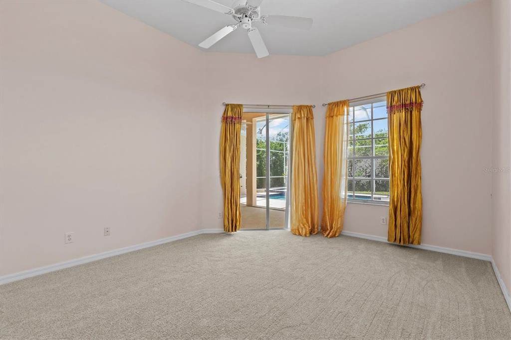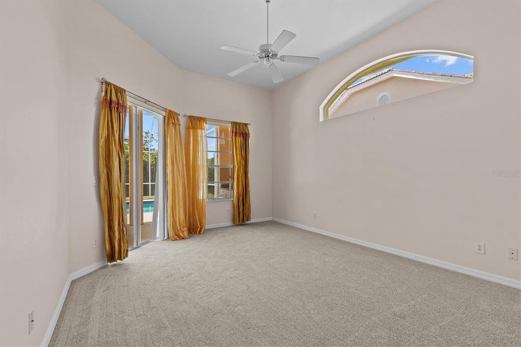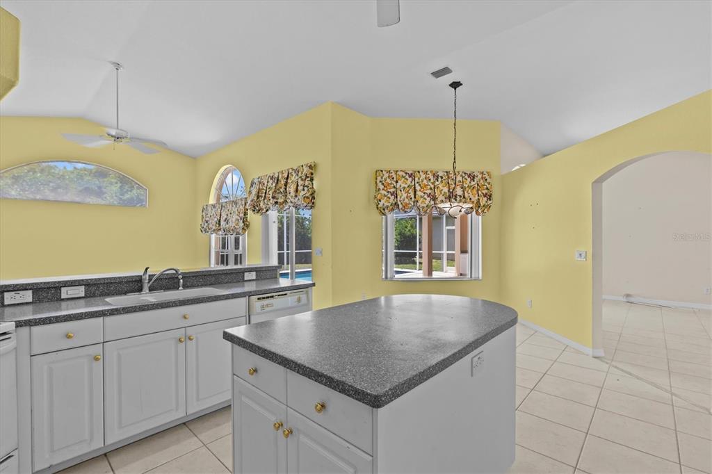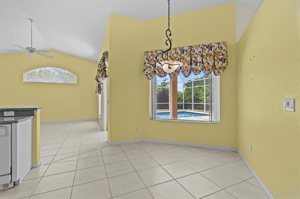 Split Bedroom Walk-In Closet(s)Ceiling Fan(s) High Ceilings Living Room/Dining Room Combo Stone Counters Window Treatments Solid Surface Counters Solid Wood Cabinets Kitchen/Family Room ComboExterior Features: