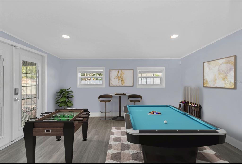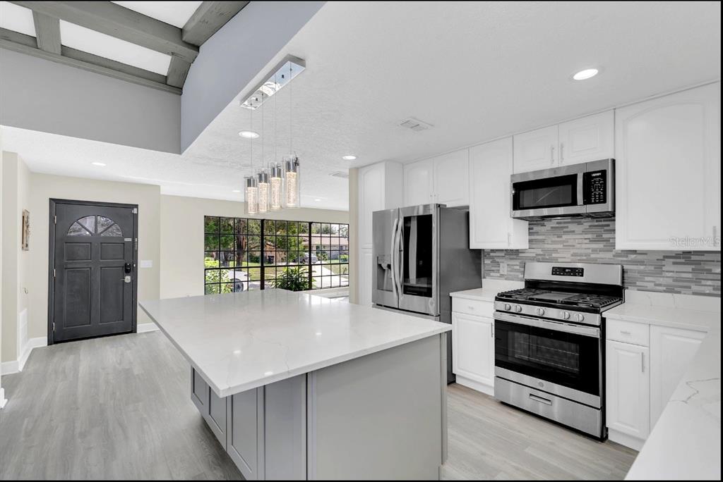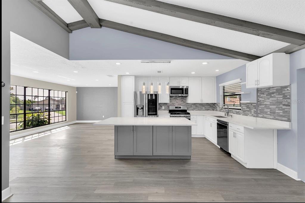 One or more photo(s) has been virtually staged. recently renovated home in the clubhouse estates community of dr. phillips, with no hoa! this corner-lot property features a newer roof (replaced in 2021), a two-car garage converted into a playroom, and a large driveway with space for seven vehicles. the spacious master bedroom includes a large walk-in closet, while the split floor plan offers a family room with high ceilings and beams. enjoy the newly renovated kitchen with quartz countertops and stainless steel appliances, along with luxury vinyl plank flooring throughout the home. the backyard is fully enclosed by a vinyl fence and includes a paved patio perfect for entertaining, complete with a granite-topped bar and fire pit. the luxurious master bathroom boasts a walk-in shower and granite-topped vanity with his-and-her sinks. the laundry room is equipped with newer samsung front-loading washer and dryer, and the gas water heater was replaced in 2016. the home has been rewired with updated light fixtures, includes an adt security system, and has an 8-zone sprinkler system. conveniently located within short distance to the ymca, dr. phillips elementary, southwest middle school, and nearby shopping including trader joe’s, whole foods, and more.don’t miss the chance to see this beautifully updated dr. phillips home—it won’t last long! one or more photo(s) has been virtually staged.7325 BURNWAY, ORLANDO, FL 32819