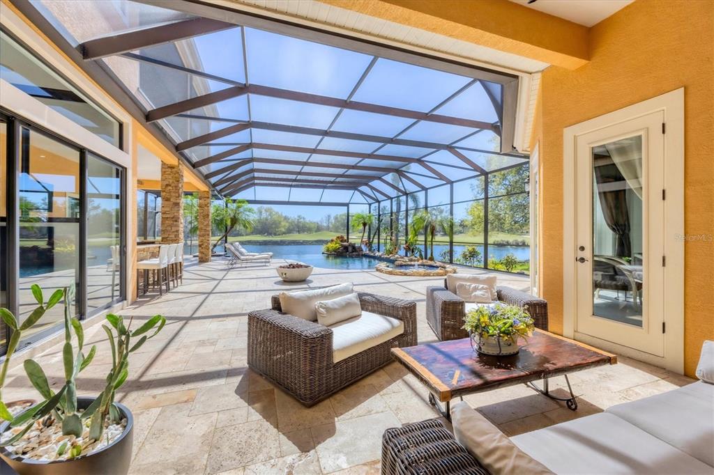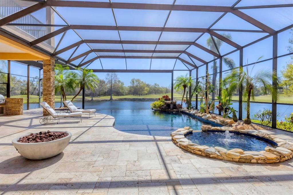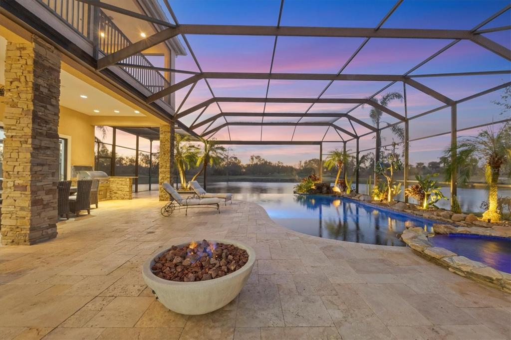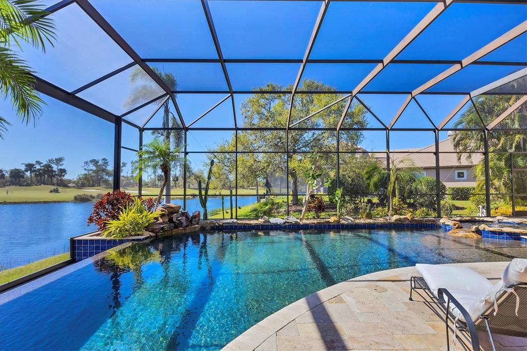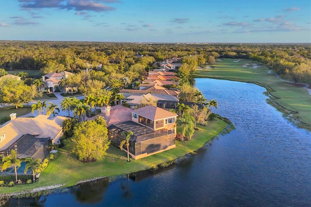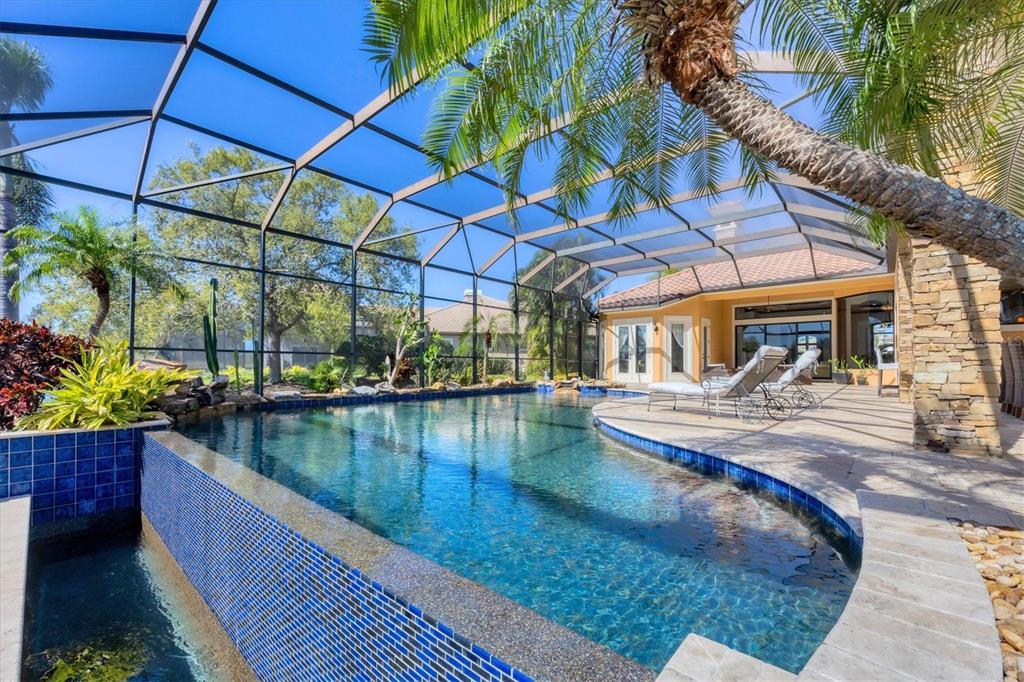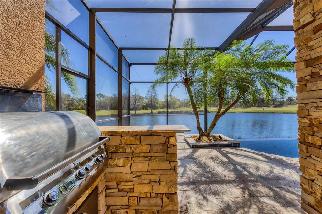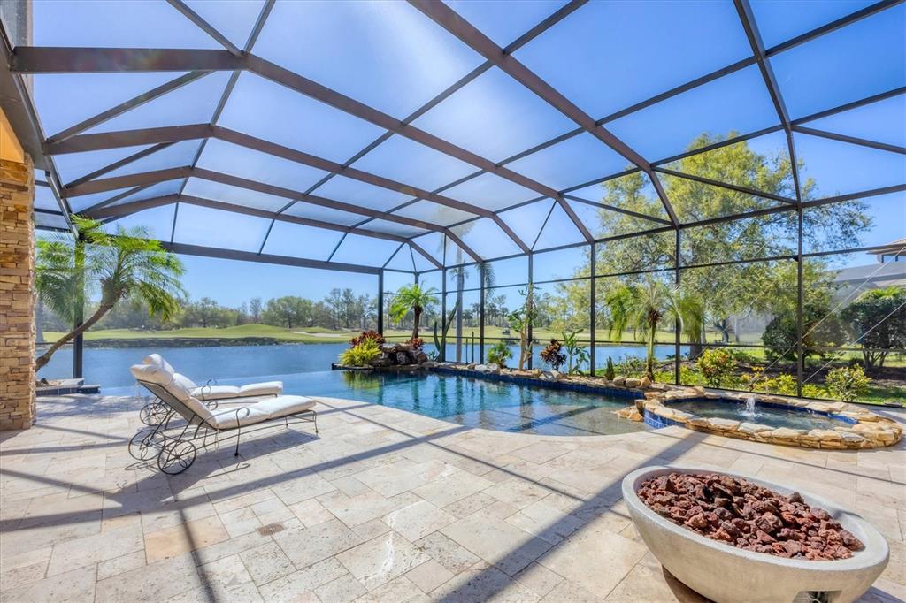 The opportunity to own a unique, custom home in greystone, a coveted enclave within lakewood ranch country club, does not come on the market often. and even more rare is finding this spectacular location enjoying wrapping majestic lake and golf course views. situated on one of the largest lots in greystone, this residence enjoys prime views of the 2nd hole of the king’s dune course designed by arnold palmer. arrive from oak-lined streets to your spacious pie-shaped lot with a quiet cul-de-sac location and expanded paver driveway. inside, the story of this home unfolds with hand-selected custom elements from the 100-year-old mahogany crown molding salvaged from sarasota yacht club, travertine and wood flooring imported from turkey, and expanded floor plan with enhanced room sizes. architectural columns and archways grace the front entry and set the stage for the impressive views. the formal living room has a cozy fireplace with stacked stone and a vintage 1895 pine mantle. the natural elements continue into the kitchen with brick walls and granite counters, plus a central prep and storage island, and perimeter island with bar-height seating. the chef is sure to appreciate the state-of-the-art italian bertazzoni gas range, plus upgraded stainless steel appliances, and plentiful cabinetry. enjoy your meals in the formal dining room, or from the dinette with large aquarium window overlooking the lake and golf course. the family room offers a convenient place to gather with large windows and sliding glass doors to the lanai. inspired by the golf course, the owners envisioned an outdoor oasis on the lanai with natural elements and smart selections that complement the beautiful views including panoramic screen enclosure to highlight the views, infinity edge pool that creates a seamless water view to the lake, and rock elements that mirror the golf course. the travertine lanai also includes a built-in restoration hardware firepit, and large outdoor kitchen with stone counters, bar fridge, ice maker, burners, and gas grill. the owner’s suite features a spacious bedroom with french doors to the lanai, dual walk-in closets, and a spa-like bathroom with handcrafted flooring by a turkish artist, large jetted tub with custom surround, and a walk-in shower with kohler rain shower and body sprayers, frameless glass enclosure, and travertine surround. guests can select from 3 enlarged bedrooms and 3 guest bathrooms. this functional floor plan also features a study with turkish wood floors and custom built-in shelving on the first level, plus a loft, bonus room, media room, and balcony on the second level. the bonus room is also pre-plumbed for a future kitchenette and the entire second level can be easily turned into a private in-law suite. don’t forget about the expanded 3-car garage that is large enough to fit 5 cars or can be used as extra storage. peace of mind is secured with impact windows and sliders throughout, surge protector, upgraded pool equipment, 2 ac units in 2023 and 1 in 2018, two tankless water heaters, central vacuum system, and more! appreciate a state-of-the-art fitness center, clubhouses, junior olympic-sized pool, four 18-hole championship golf courses, tennis and pickleball, and more by becoming a member of the lakewood ranch country club. lakewood ranch is the top multi-generational community in the country for 7 years in a row with award-winning shopping, dining, a-rated schools, parks, and nearby beaches.7327 GREYSTONE, LAKEWOOD RANCH, FL 34202