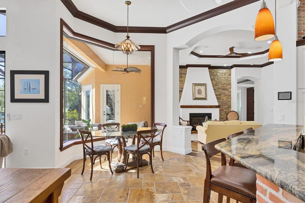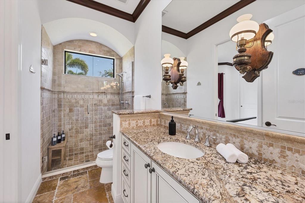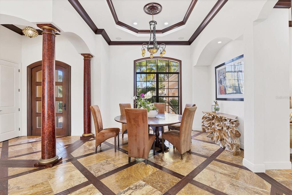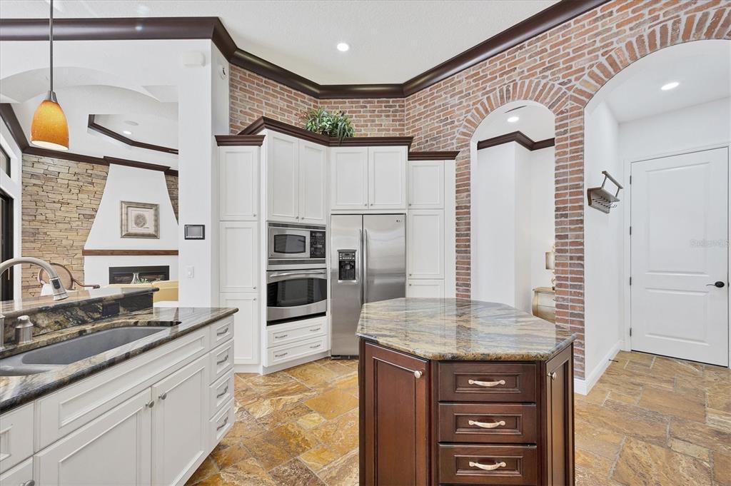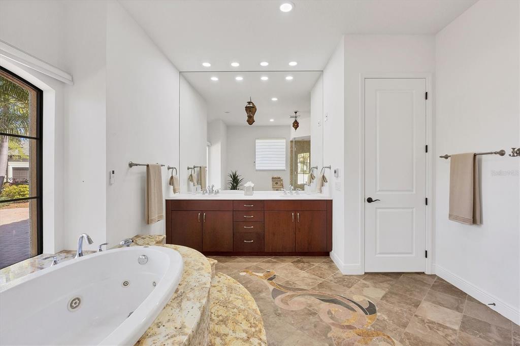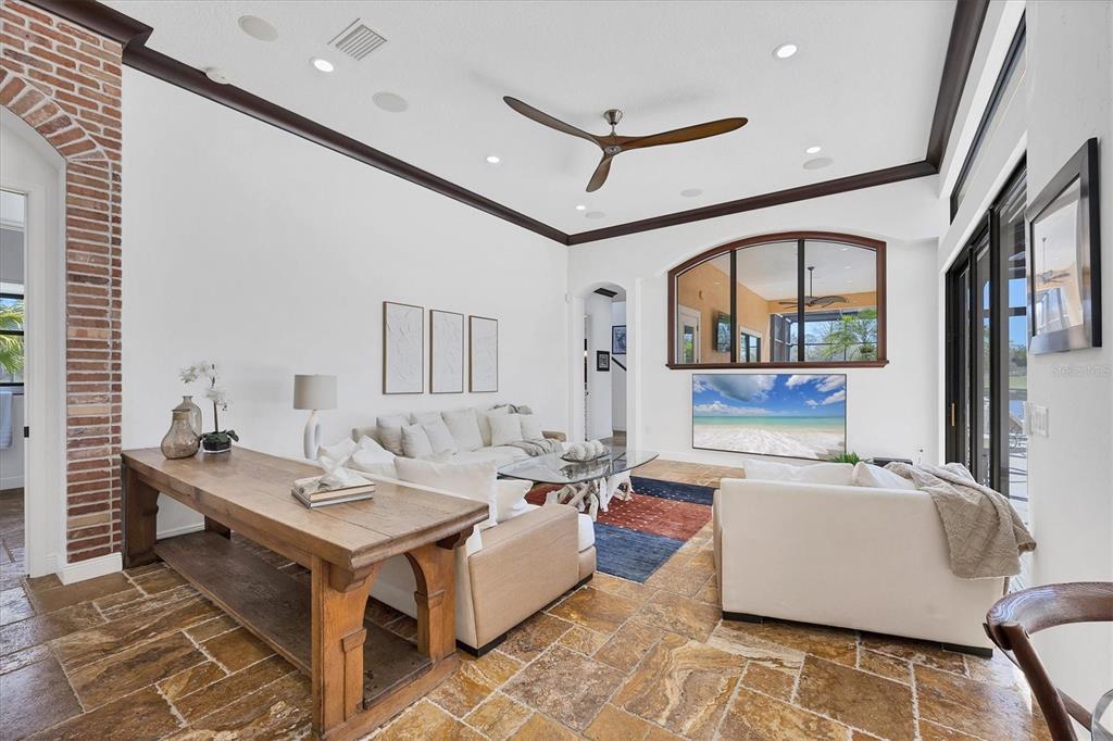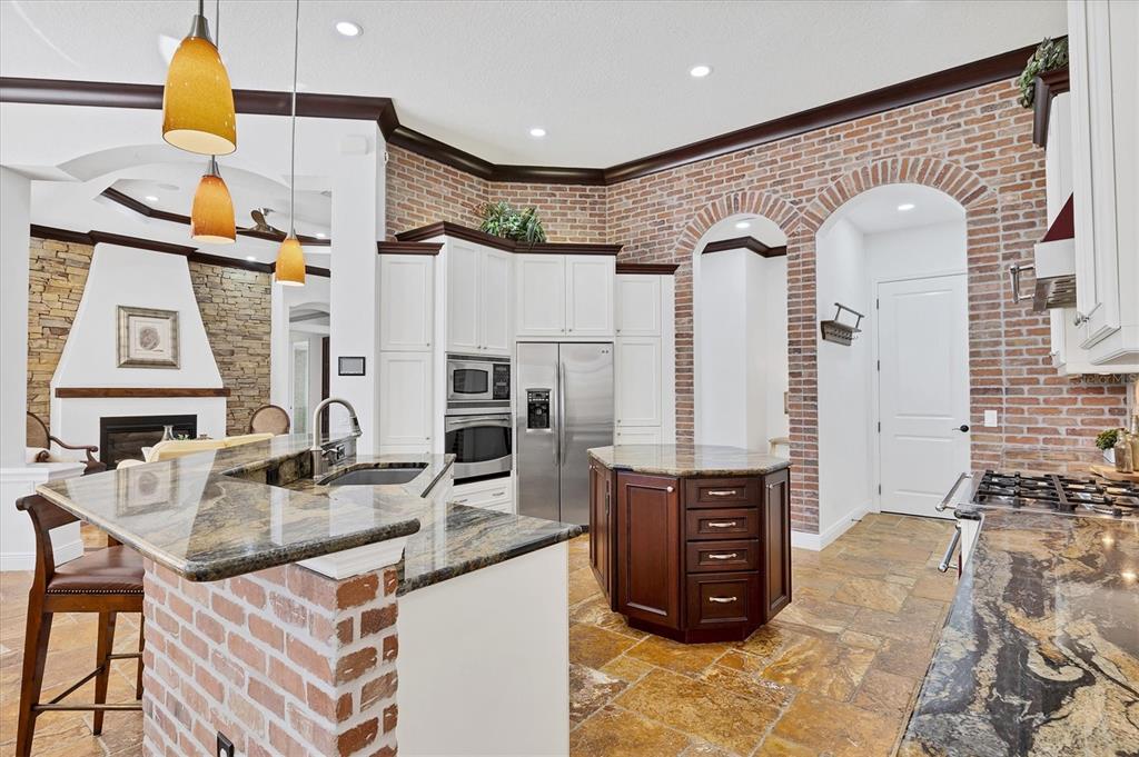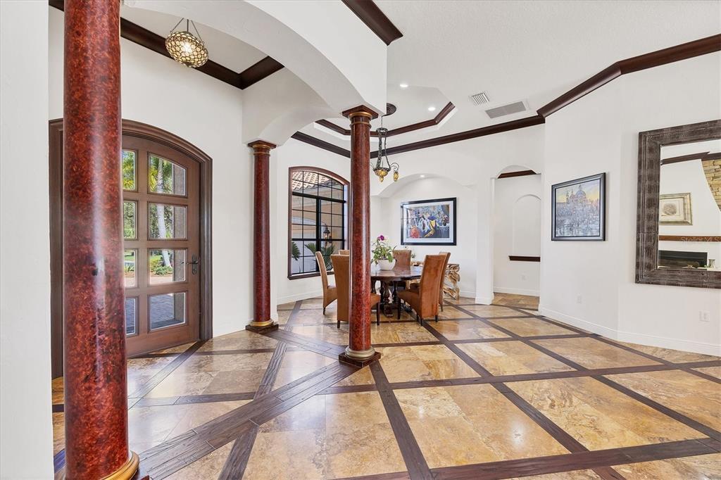 The opportunity to own a unique, custom home in greystone, a coveted enclave within lakewood ranch country club, does not come on the market often. and even more rare is finding this spectacular location enjoying wrapping majestic lake and golf course views. situated on one of the largest lots in greystone, this residence enjoys prime views of the 2nd hole of the king’s dune course designed by arnold palmer. arrive from oak-lined streets to your spacious pie-shaped lot with a quiet cul-de-sac location and expanded paver driveway. inside, the story of this home unfolds with hand-selected custom elements from the 100-year-old mahogany crown molding salvaged from sarasota yacht club, travertine and wood flooring imported from turkey, and expanded floor plan with enhanced room sizes. architectural columns and archways grace the front entry and set the stage for the impressive views. the formal living room has a cozy fireplace with stacked stone and a vintage 1895 pine mantle. the natural elements continue into the kitchen with brick walls and granite counters, plus a central prep and storage island, and perimeter island with bar-height seating. the chef is sure to appreciate the state-of-the-art italian bertazzoni gas range, plus upgraded stainless steel appliances, and plentiful cabinetry. enjoy your meals in the formal dining room, or from the dinette with large aquarium window overlooking the lake and golf course. the family room offers a convenient place to gather with large windows and sliding glass doors to the lanai. inspired by the golf course, the owners envisioned an outdoor oasis on the lanai with natural elements and smart selections that complement the beautiful views including panoramic screen enclosure to highlight the views, infinity edge pool that creates a seamless water view to the lake, and rock elements that mirror the golf course. the travertine lanai also includes a built-in restoration hardware firepit, and large outdoor kitchen with stone counters, bar fridge, ice maker, burners, and gas grill. the owner’s suite features a spacious bedroom with french doors to the lanai, dual walk-in closets, and a spa-like bathroom with handcrafted flooring by a turkish artist, large jetted tub with custom surround, and a walk-in shower with kohler rain shower and body sprayers, frameless glass enclosure, and travertine surround. guests can select from 3 enlarged bedrooms and 3 guest bathrooms. this functional floor plan also features a study with turkish wood floors and custom built-in shelving on the first level, plus a loft, bonus room, media room, and balcony on the second level. the bonus room is also pre-plumbed for a future kitchenette and the entire second level can be easily turned into a private in-law suite. don’t forget about the expanded 3-car garage that is large enough to fit 5 cars or can be used as extra storage. peace of mind is secured with impact windows and sliders throughout, surge protector, upgraded pool equipment, 2 ac units in 2023 and 1 in 2018, two tankless water heaters, central vacuum system, and more! appreciate a state-of-the-art fitness center, clubhouses, junior olympic-sized pool, four 18-hole championship golf courses, tennis and pickleball, and more by becoming a member of the lakewood ranch country club. lakewood ranch is the top multi-generational community in the country for 7 years in a row with award-winning shopping, dining, a-rated schools, parks, and nearby beaches.7327 GREYSTONE, LAKEWOOD RANCH, FL 34202