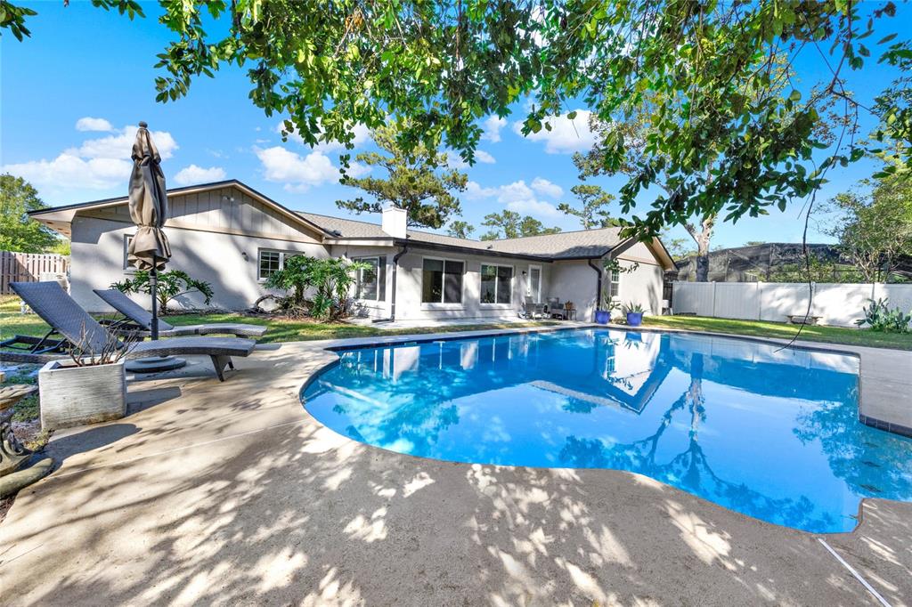 Don't miss seeing this lovely home in gorgeous sweetwater oaks! as you tour, take note of the large rooms throughout the house! this four-bedroom, two-bath, split floor plan features spacious rooms offering flexibility to use the space to suit your needs! as you enter, a large dining room is to your right, and an even larger living room is to your left. the dining room can accommodate a sizable table, and there is plenty of wall space for furniture. the living room would also make a great office/flex space. the cozy family room has soaring vaulted ceilings, wood beams, and a stone fireplace. the kitchen offers gleaming stainless steel appliances, abundant cabinet space, and room for a table. the primary suite has ample room for a king-size bed with room to spare. the second bath was beautifully remodeled and is located conveniently near the additional 3 bedrooms. a big, sun room gives you yet another wonderful living space and leads out to your backyard oasis! venture outside to enjoy the huge oversized lap pool, which is great for exercise and water games. with its tree-lined streets and sidewalks, sweetwater oaks offers exclusive private amenities and top-rated schools. enjoy the private beach on the shores of lake brantley, tennis, pickleball, and basketball courts, 2 playgrounds, 2 covered pavilions, a volleyball court, a fishing dock, a soccer field, a baseball field, a boat ramp, access to the wekiva river by canoe, kayak or paddle board, and a community center that is available to rent for parties and special occasions. the big ticket items have been done for you! roof was replaced in 2022, the a/c in 2024, the pool resurfaced in 2022, and the windows were replaced with pella windows throughout the home.734 RIVERBEND, LONGWOOD, FL 32779