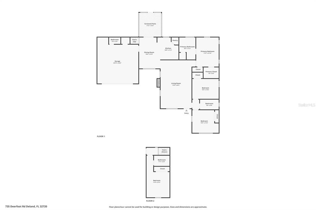 One or more photo(s) has been virtually staged. look no further!! this is your dream home on your own private country estate! – inviting front porch with swing is your first impression of this lovely 4 bedroom/3.5 bath home on beautiful 2.08 acre estate. property has an additional (freestanding) 28x23 -2 car garage on property could easily be converted into a workshop, apartment, mother-in-law suite, office, or whatever you need. property is fully fenced and also has a large pole barn in rear of property. home boasts of a massive living room with gas fireplace that is perfect to host large family gatherings. stylish, light wood look flooring throughout the common areas. a well-appointed kitchen with granite counters and neutral tile floors opens to the dining area. double french doors lead to a screen room which overlooks this expansive property. large primary bedroom with walk-in closet and bath. bonus!! private upstairs second master suite with full bath/closet. or this could be used for the perfect work from home set-up. conveniently located close to shopping and restaurants. just minutes to downtown deland with mainstreet, boutiques, festivals, athens theater, wine bars, breweries, coffee shops and stetson university. a short, 30-minute drive to the beaches. easy commute to lake mary/heathrow, 45 mins to orlando, 1 hour to disney. all realtor information is presumed correct but not guaranteed including dimensions, zoning, uses and description. buyer and buyer's agent to verify all information.735 DEERFOOT, DELAND, FL 32720
