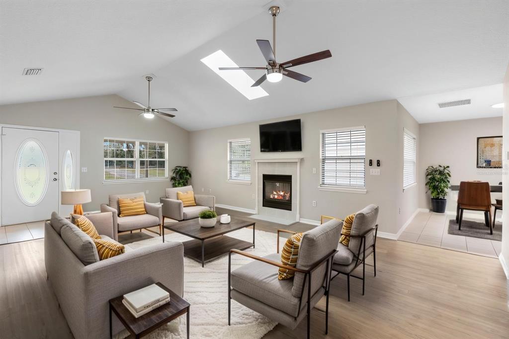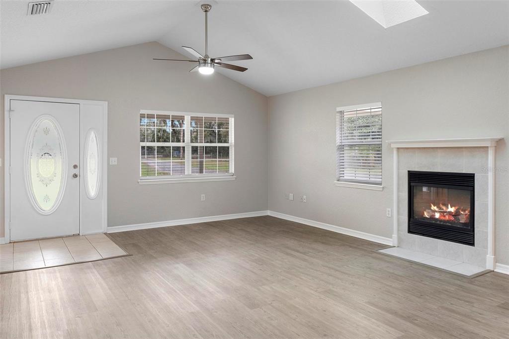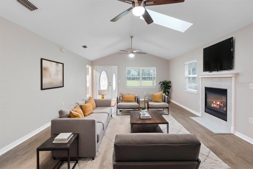 Vaulted Ceiling(s)Ceiling Fan(s) Solid Surface Counters Skylight(s)Exterior Features: