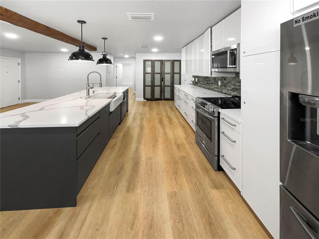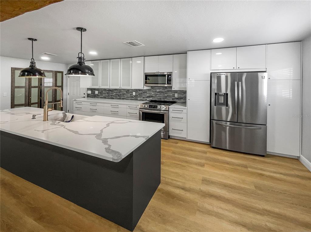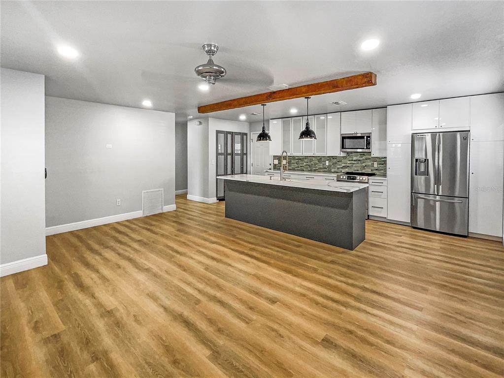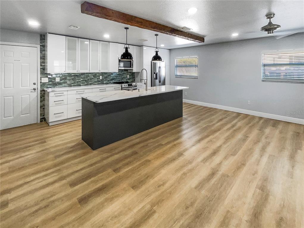 One or more photo(s) has been virtually staged. welcome to this beautifully designed home. the interior boasts a neutral color paint scheme that creates a calming and serene atmosphere. the kitchen is a chef's dream with a convenient island, all stainless steel appliances, and a stunning accent backsplash that adds a touch of elegance. the primary bedroom is a haven of relaxation featuring double closets for ample storage. the exterior of the home is just as impressive, featuring a deck perfect for outdoor entertaining. this home is a must-see for anyone seeking a blend of style and comfort.736 MAC CRILLUS, LARGO, FL 33770