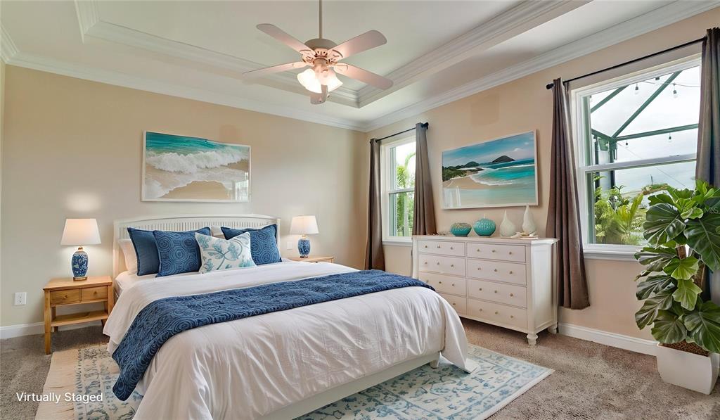Welcome to this immaculately maintained original home in the desirable community of stoneledge. with 3 bedrooms, a den, and 2.5 baths across 2,035 square feet, this residence offers a seamless blend of comfort, style, and thoughtful upgrades. nestled on a fully fenced homesite overlooking a tranquil pond, the backyard is your private oasis—complete with an extended screened lanai, pavered patio, edison-style lighting, and concrete under the rear fence for added security. enjoy spectacular evening sunsets right from your backyard. inside, you’ll find tile flooring throughout the main living areas, luxury vinyl waterproof plank flooring in the office, and carpet in primary & one guest bedroom. the wide entry foyer, custom crown molding, updated baseboards, and plantation shutters at the dining room and office enhance the home’s elegant character. the gourmet kitchen is equipped with stainless steel appliances, 42-inch wood cabinetry, granite countertops, under-cabinet lighting, usb-equipped, pendant lights over the island, and slide-out drawers in the lower cabinets. a pantry with durable steel shelving completes the space. additional highlights include: accordion and roll-down hurricane shutters throughout, included generator, 20-amp service in the den for an extra fridge or freezer, primary suite with double vanities, soaking tub, and separate shower, large front-load washer and dryer with storage shelves, closet upgrades with double-door entry and blackout curtains in one guest room. low monthly hoa of just $92, covering ponds, common areas, entrance, dog park, and mailboxes. new ac system (feb 2024) with transferable 10 year warranty. average electric bill of just $125/month. every detail has been thoughtfully designed and lovingly cared for—this is truly a move-in-ready gem in a sought-after neighborhood.7364 47TH AVENUE E, BRADENTON, FL 34203