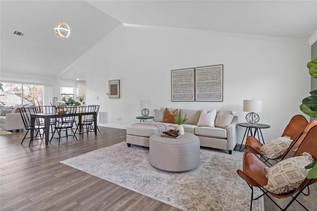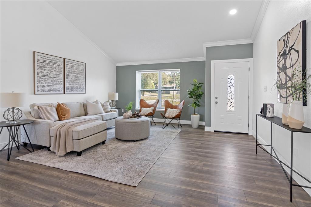 Prepare to be amazed by this exquisitely reimagined home in the desirable hiawassee hills community. this 4-bedroom, 2-bathroom residence has been thoughtfully renovated from top to bottom, blending modern sophistication with timeless charm. dazzling high ceilings set the stage for a bright and spacious living area, while the kitchen impresses with its soft close cabinetry, luxurious quartz countertop and brand new stainless steel appliances. the renovated bathrooms also features quartz counters in addition to the new vanities and elegant tiles. the fresh paint, wood inspired laminate flooring, new crown molding, new baseboards and new fixtures throughout add the perfect finishing touches. boasting new low e windows, a newer a/c and a roof done in 2017, this home is as structurally sound as it is beautiful. the exterior has undone a complete overhaul to include entirely new stucco and distinctive brick pavers that accentuates the extended driveway and patio area. the removal of large trees on this stately 0.27 fenced in lot enhances safety and further adds to the home's curb appeal. this property offers easy access to i-4 and 408, making commuting a breeze. you'll be close to all of orlando's major attractions, as well as a variety of entertainment, shopping, and dining options. don't hesitate! call your agent to setup your showing today!7366 LAZY HL, ORLANDO, FL 32818