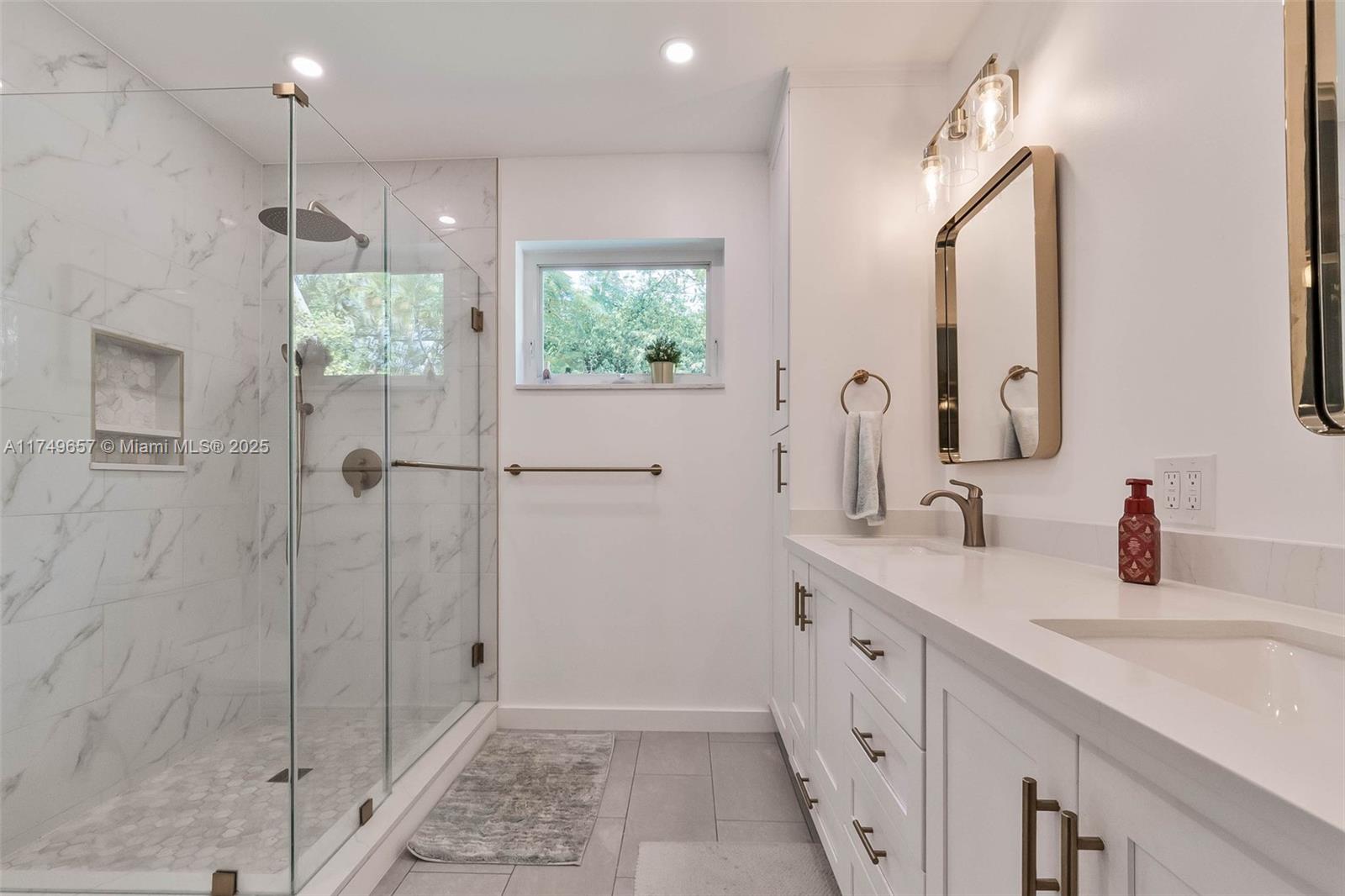 Beautiful 4 bdrm, 2.5 bath home on a half-acre, oversized corner lot in the village of pinecrest. formal living & dining areas. cheerful kitchen w/ blonde tone wood cabinetry & quartz countertops, opens to family rm w/ access to the patio. fantastic primary suite has serene views of the pool & backyard. newly remodeled primary bath w/ modern details, double sinks, glass enclosed shower. 4th bdrm currently connects to the primary suite for use as a gym, office but can easily be changed back to a 4th bdrm. impact windows/doors, plank tile flooring. fenced backyard w/ lime & mango trees, double gate w/ space to park a boat/ rv. wonderful outdoor entertaining space. covered terrace w/ bar area ready for a summer kitchen, pool, marble patio. paver circular driveway. 2 car garage side entry.7405 SW 132ND ST, PINECREST, FL 33156