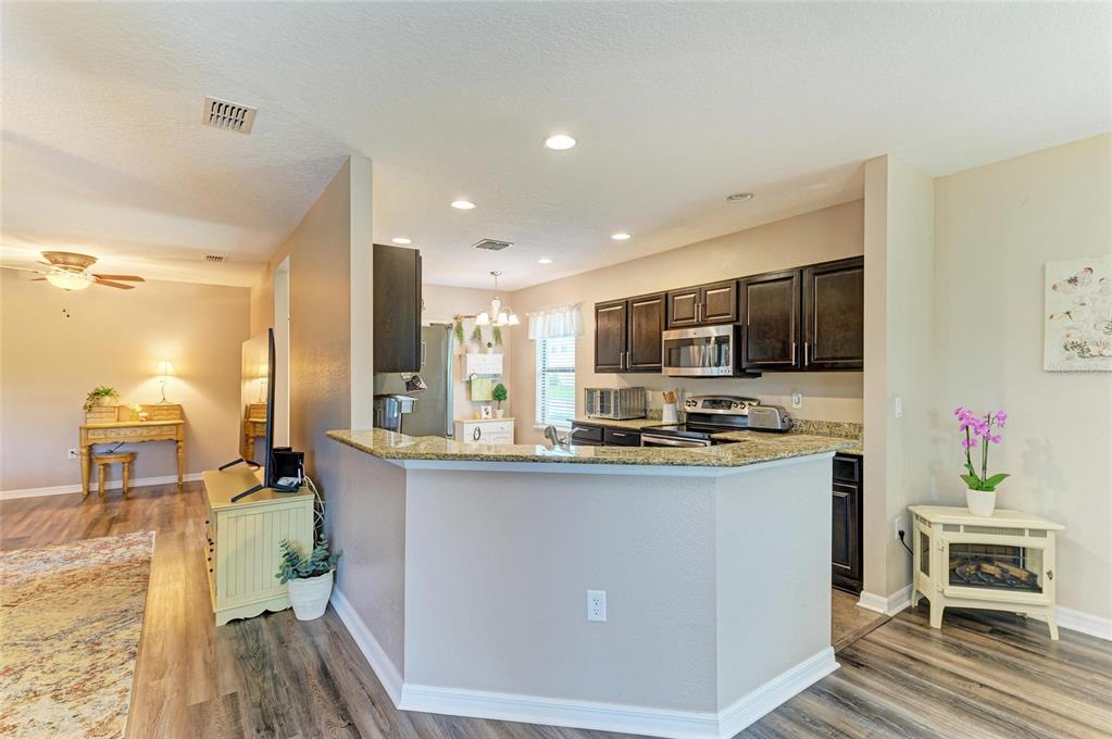 Split Bedroom Walk-In Closet(s)Ceiling Fan(s) Living Room/Dining Room Combo Stone Counters Open Floorplan Window Treatments Solid Wood Cabinets L DiningExterior Features: