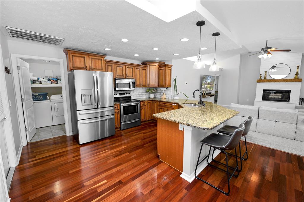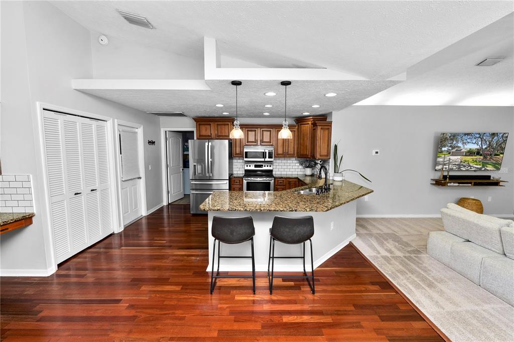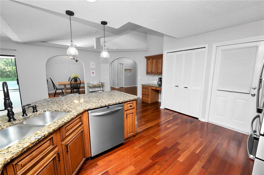 Built-in Features Walk-In Closet(s)Ceiling Fan(s) Eating Space In Kitchen Stone Counters Solid Wood Cabinets Dry BarExterior Features: