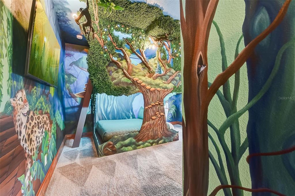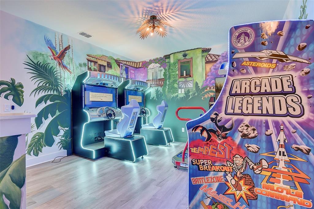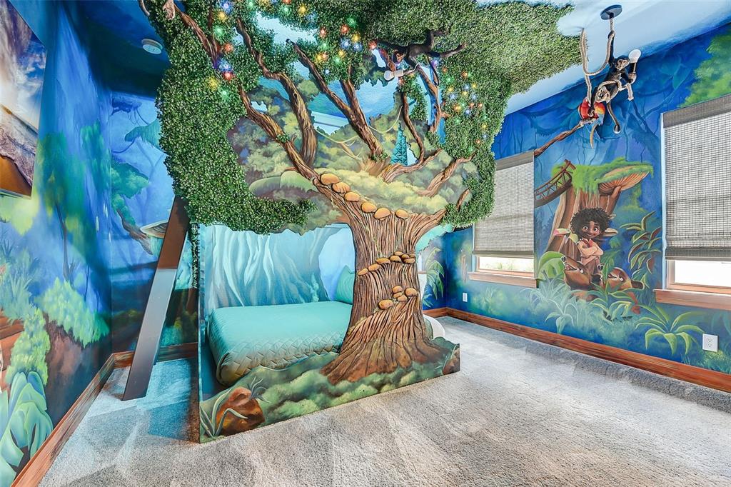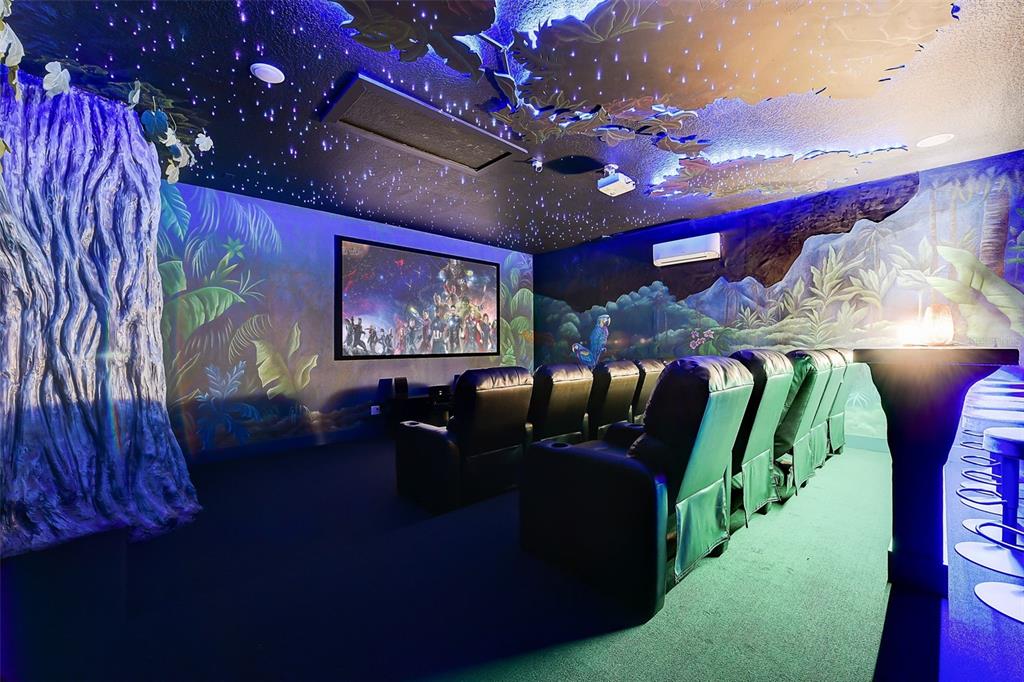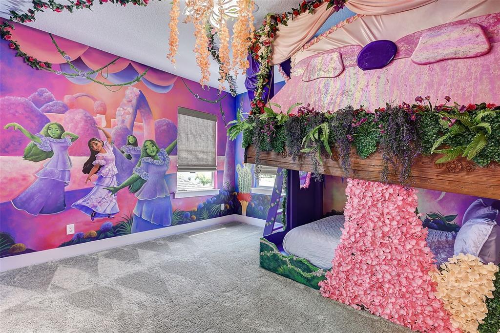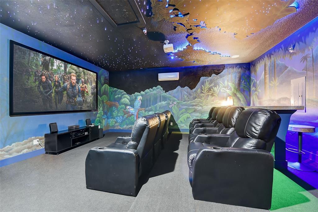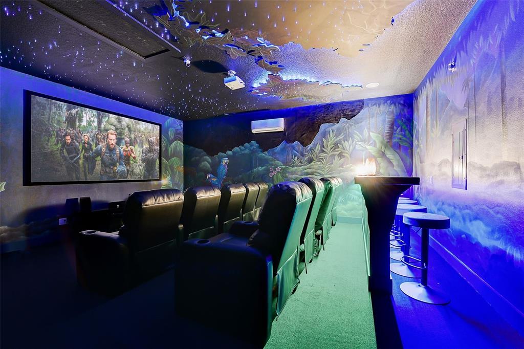 Welcome to the home of "the family madrigal." drawers! floors! doors! every detail in this luxury villa is magical. step into the world of short-term rentals in the golfing and entertainment resort of reunion. behind each of the 6 bedroom doors an immersive experience awaits. a few features include: sound activated lights in pepe's cloud room, monkey chandeliers in antonio's room, bruno's connecting cave (with slide) that leads to isabella's flower filled retreat, special effects in the movie theatre, and a fun-filled private aracade. the main living spaces tie into the classic casita style and provide ample space to cook, lounge, or entertain. this property is turn-key so everything you need is already here, including hidden "easter eggs" in the design you must come tour to find. the downstairs primary bedroom has a huge walk-in closet and a well appointed bathroom. one additional bedroom and bathroom are downstairs and the remaining 4 are upstairs. check out the attached floor plans and 3-d walkthrough. outside awaits your pool and spa oasis with loungers, outdoor dining set, and swaying palm trees. sweet smelling jasmine vines grow around the fence for added privacy and allure. there is a rear paver driveway for additional parking or it could easily be added as additional patio space by extending the fencing along the perimeter. think of all the magical moments you will have and all the rental income this villa will conjure up. active membership is attached and available for transfer.7458 GATHERING, REUNION, FL 34747