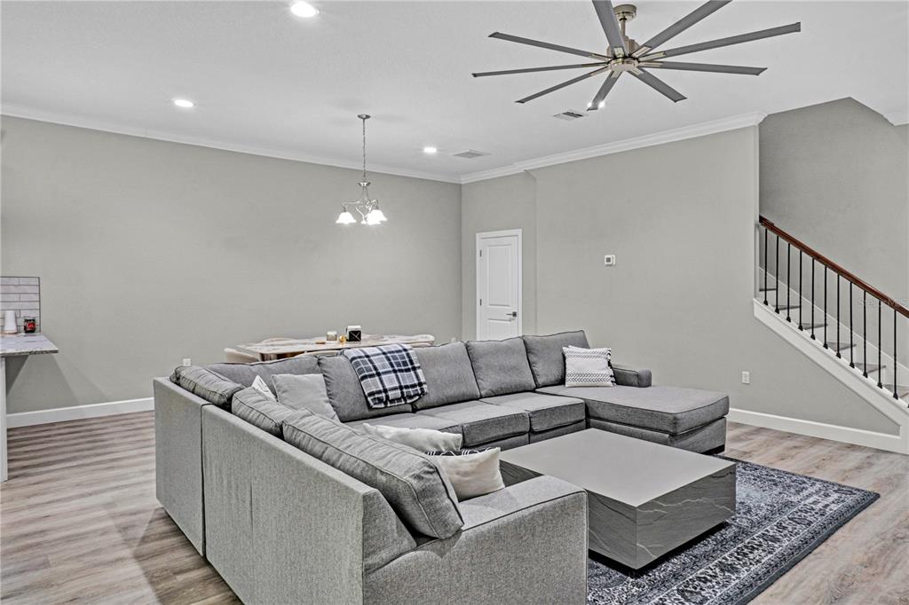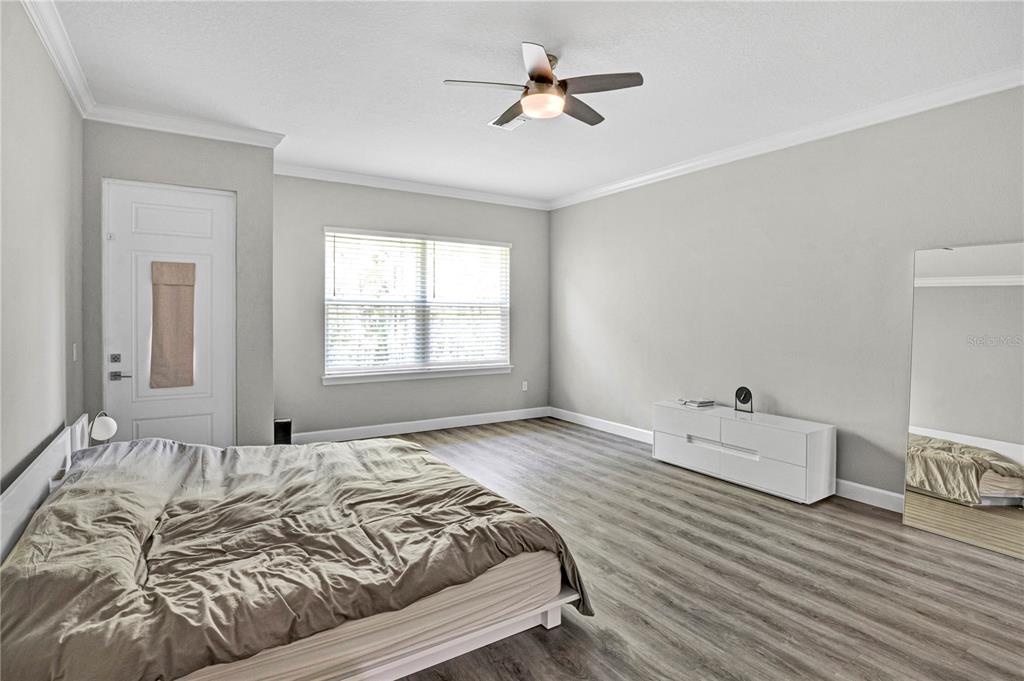 Ceiling Fan(s) High Ceilings Thermostat Open Floorplan Solid Surface CountersCrown Molding PrimaryBedroom UpstairsExterior Features: