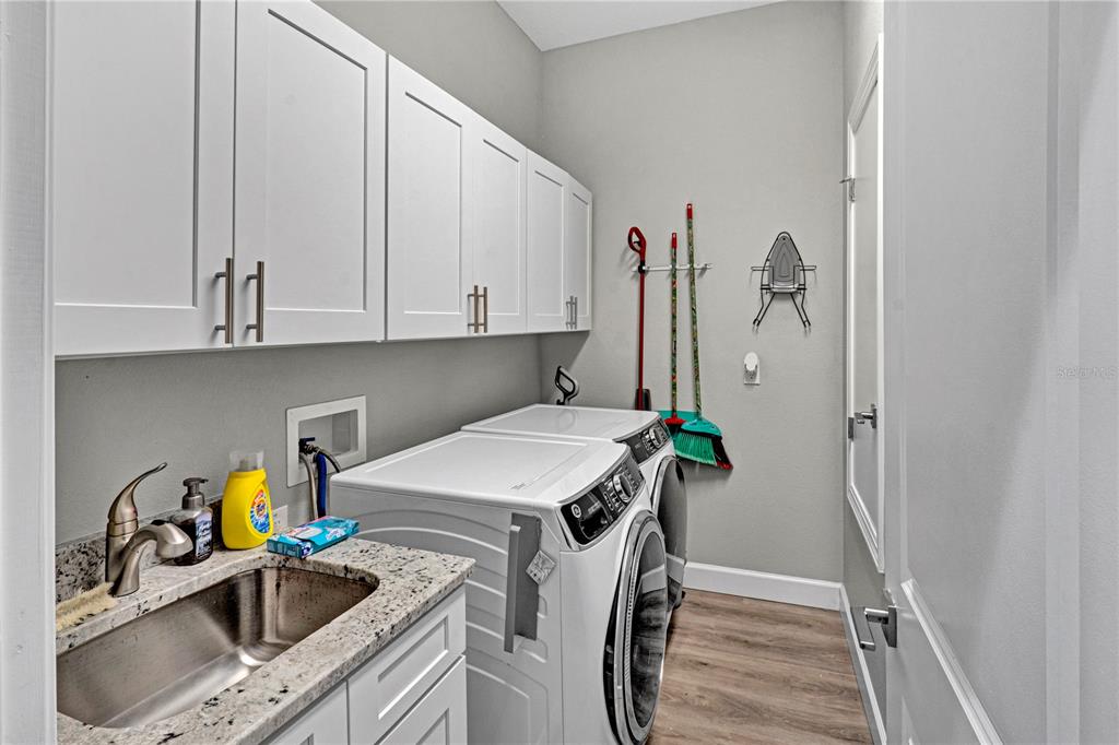 Move-in ready, premium 3 bedroom, 2.5 bath end unit town house on a preserve view lot in the sought-after grand cypress trails community, nestled in the heart of tarpon springs. built in 2022, this two-story gem combines style, comfort, and convenience — all just minutes from beaches, golf courses, the pinellas trail, and the charming, historic downtown area full of restaurants, shops, and entertainment. from the moment you arrive, the paver driveway and covered entryway invite you into a home filled with modern upgrades and finishes. inside, you'll find soaring ceilings, luxury vinyl plank flooring, and a spacious open-concept layout. the main floor features a large great room, an elegant dining area, a guest powder bath, and a gourmet kitchen with granite countertops, subway tile backsplash, stainless steel appliances (including a natural gas range), custom soft-close cabinetry with crown molding, upgraded fixtures, recessed led lighting, and plantation shutters throughout. step through impact-resistant sliding glass doors to a screened-in lanai offering tranquil views of the private preserve, with a privacy shade and dedicated grilling area — perfect for outdoor entertaining. upstairs, retreat to the expansive primary suite, complete with a private balcony overlooking the preserve — ideal for enjoying sunsets or a quiet morning coffee. the luxurious en-suite bathroom features granite dual vanities, added storage cabinetry, upgraded mirrors, a walk-in shower, and both a standard and a custom-designed walk-in closet. two spacious guest bedrooms and a well-appointed full bath complete the upper level, along with a convenient laundry room featuring storage cabinets, a laundry sink, washer and gas dryer.746 GRAND CYPRESS, TARPON SPRINGS, FL 34689