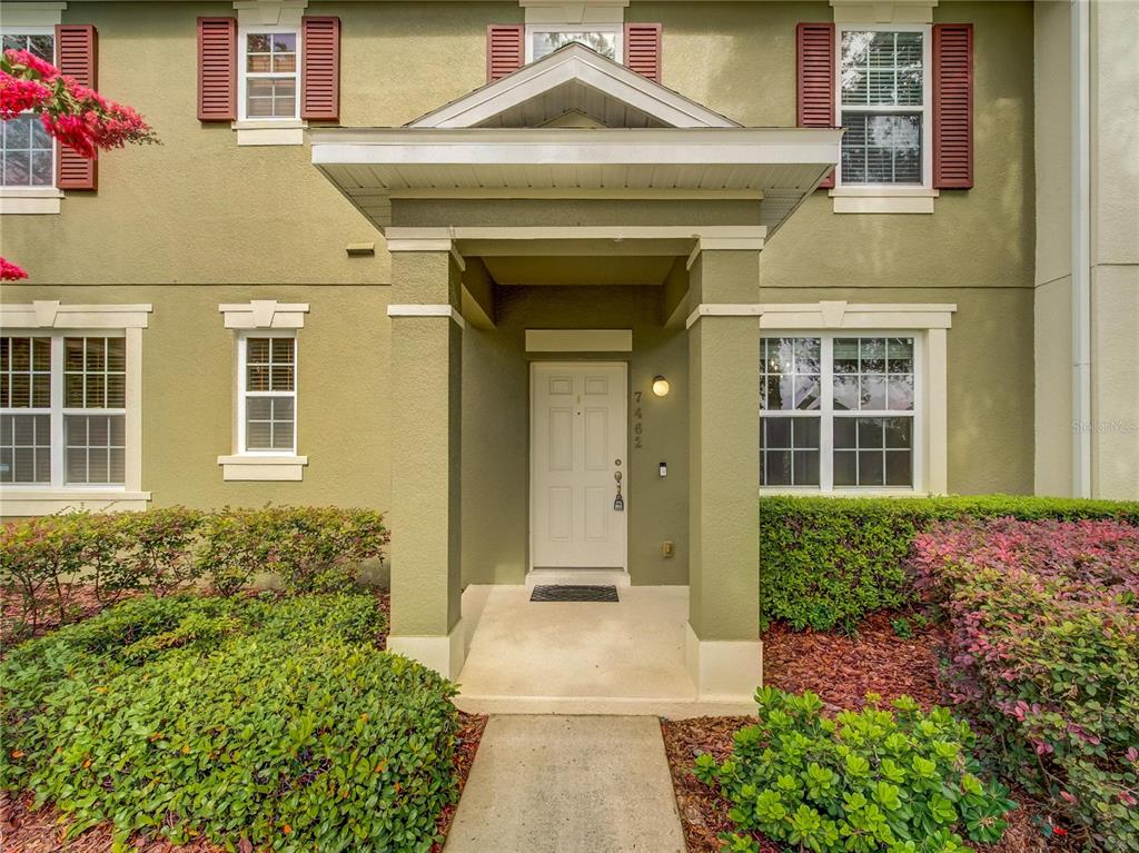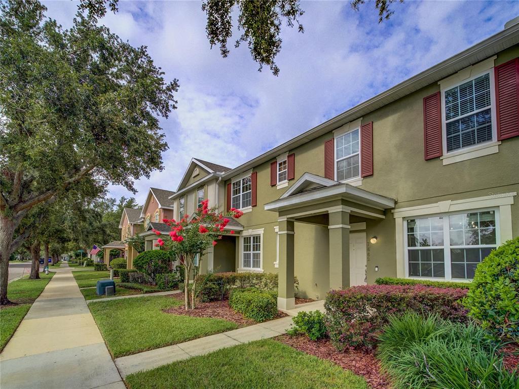 Move in ready 3/2.5 townhome in windermere! new roof 2024. ac compressor new june 2025. rear entry 2 car garage. all stainless-steel fridge, stove, microwave and dishwasher and solid surface counter tops. versatile all ceramic tiled 1st floor plan with formal dining room or use as front office. open kitchen to rear great room that opens to covered screened private patio and fenced yard. all bedrooms up, primary bedroom features ceramic tile floor, fan, 8'x5' walk-in closet, dual sinks and garden tub in en-suite bath, secondary bedrooms have carpet. energy efficient double pane windows. community pool and clubhouse, playground, and trails nearby all at affordable hoa fees. convenient to shopping and attractions and no neighbors across the street. one or more photos has been virtually staged with a-i technology.7462 BENTONSHIRE AVE, WINDERMERE, FL 34786