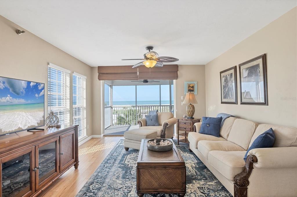 Come see this beautifully appointed and well maintained gulf front, 2 bedroom, 2 full bathroom condo in the sought after association of palm island village ii, located on a private island in palm island resort. the 180 degree spectacular view of the gulf and its aqua blue water and miles of beach, are just steps away. take a 4 minute car ferry ride over and discover our definition of serenity. as you enter the parking lot, where your gas powered vehicle will stay, a bellman may deliver you and your belongings to your own piece of paradise via a golf cart, which is the preferred mode of transportation. the condo is located on the 1st floor of the stilted building. as you enter the unit, your spacious laundry room with stainless washer and dryer, granite counters and plenty of cabinet space, is to your right. straight ahead is the nice sized kitchen with soft close cabinetry, granite counters and stainless appliances comes well equipped in this turnkey home. to the right of the kitchen is the guest area that can be cordoned off as its own private suite with a full bath and a bedroom with a king size bed. stepping back into the living area, the breakfast bar with stools are also part of the dining area. the dining area with its bowed window, adds to the spectacular view. the open floor plan continues out onto the screened in lanai with sliders. the outdoor stairs from this deck are still in the midst of being rebuilt by the association from the hurricane. the primary suite that is off of the living area is a beautiful, peaceful oasis furnished with tommy bahama. the nicely renovated bathroom has a walk-in shower and dual sinks. imagine waking up to those views! the sunsets are memorizing every night. it has wooden laminate and porcelain tile throughout. no carpeting. there are community pools, tennis courts and pickleball courts. community docks. the only retail on the island is in the resort with its rum bay restaurant, coconuts for sundries, ice cream and golf cart rentals. and a gift boutique. there are miles of beautiful beach. the intracoastal. lots of nature to learn and explore. on the mainland you have many outstanding golf courses, restaurants, shopping, fishing, boating, and many community events. come enjoy your own piece of paradise!!7470 PALM IS #2813, PLACIDA, FL 33946
