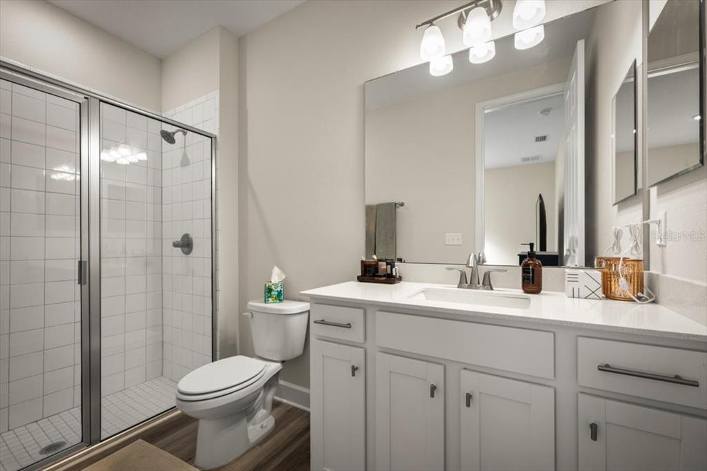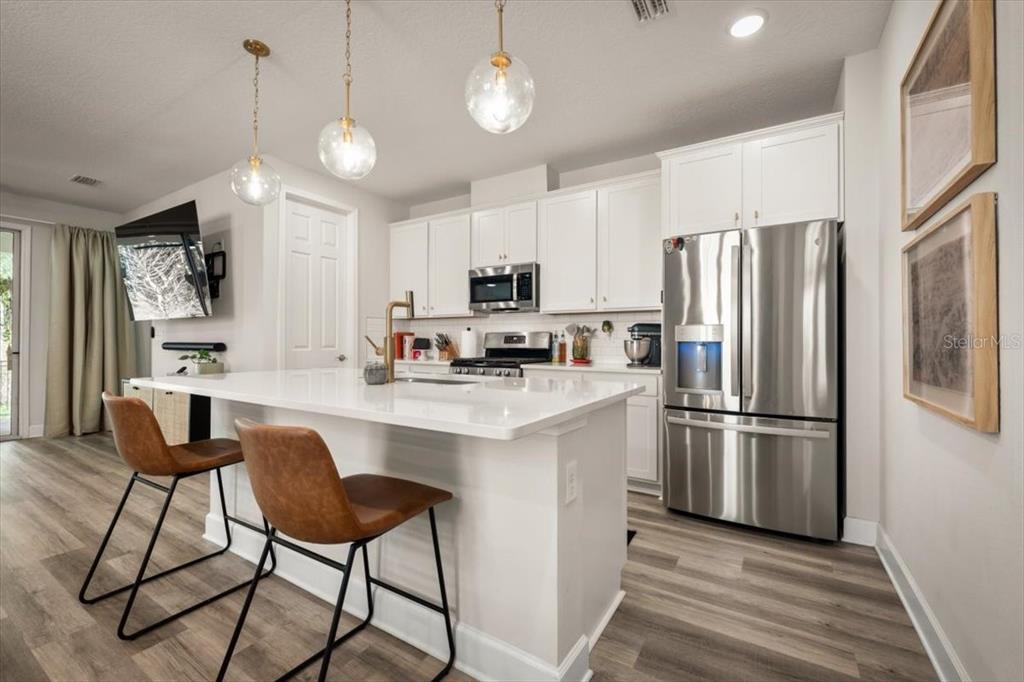 Look no further! why wait for new construction? curb appeal galore in this lovely richmond atlantic larimar home in tributary. the home features 1,878 sq. ft., 4 bedroom/3 full bathrooms and an attached 2-car garage. the open and light-filled living area beautifully combines a gourmet kitchen and great room with views of the conservation area and fully fenced backyard through the sliding doors. three-way split bedroom plan allows for plenty of privacy. the gourmet cook's kitchen features 42 inch soft close cabinets, dovetail drawers, a five burner gas range with griddle, quartz countertops, large center island, tile backsplash, stainless appliances and a spacious walk in pantry. luxury vinyl plank floors run throughout much of the home's living spaces. primary bedroom features a spa like bathroom with double vanity, large stall shower, beautiful decorative tile and large walk-in closet. the 4th bedroom features a large ensuite bathroom. updated lighting and ceiling fans as well as all appliances stay with the home. covered lanai allows for outdoor entertaining while enjoying the beautiful conservation area behind the property. nicely landscaped. tributary is an impressive new home community near wildlight. amenities include a state of the art fitness center, club house, pool, pickle ball , playground and two dog parks. it is a short distance to all of the jacksonville area's many attractions; atlantic beaches, boating, local shopping, restaurants and interstate-95 and amelia island. a great commute to points north and south. make this beautiful home your own! cdd included in total tax amount.75280 WHITE RABBIT AVE, YULEE, FL 32097