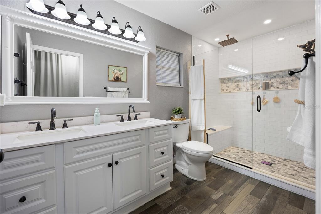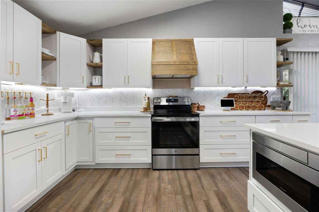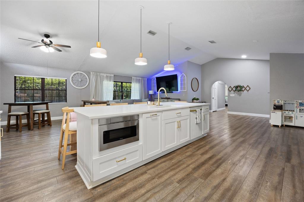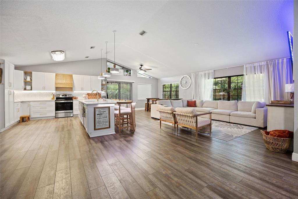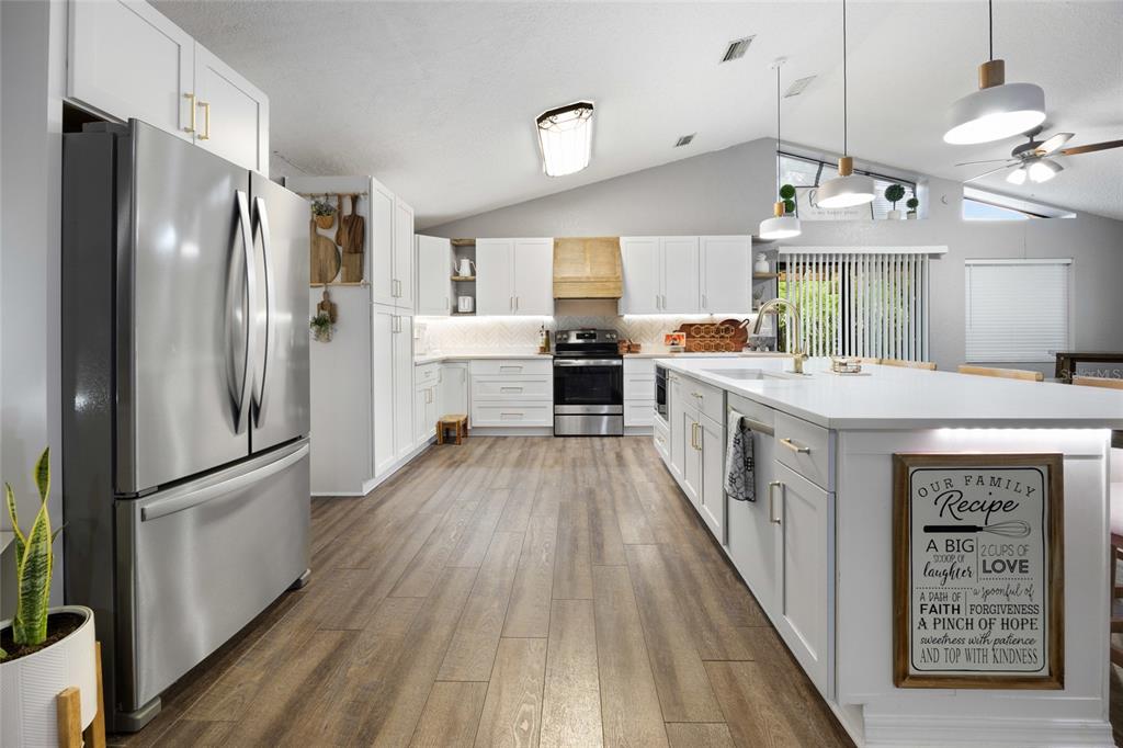 Nestled within one of marion county's hidden gems, the exquisite home in the southwest subdivision of hidden lake offers a serene retreat. spanning over one-third of an acre, this luxuriously landscaped property invites you to experience a blend of comfort and elegance. the spacious residence boasts over 1,800 square feet, complete with an oversized two-car garage featuring a new insulated door for added convenience. inside, the home features soaring cathedral ceilings and new luxury vinyl plank flooring that seamlessly flows from room to room. every detail has been thoughtfully updated, from the stylish new fans and light fixtures to the stunning kitchen, which showcases upgraded cabinetry, granite countertops, beautiful new island, abundant pantry space, and modern stainless steel appliances. both bathrooms in this stunning home have been completely renovated for modern elegance and functionality. the master suite stands out with its beautifully designed vanity, an expansive walk-in closet. the highlight of the master bath is undoubtedly the oversized shower, featuring double showerheads and a luxurious rainfall showerhead equipped with a separate controller, along with a marble bench for added comfort. outside, the property boasts an extended patio perfect for entertaining, adorned with a charming gazebo that includes a ceiling fan and bistro lighting, setting the perfect ambiance for cozy evenings. an led tv enhances the outdoor experience, making it an ideal spot to unwind. the backyard is entirely enclosed with vinyl fencing and accented by lush bamboo hedges, and a vinyl storage shed. for convenience, the entire property features a wi-fi-enabled sprinkler system that ensures lush greenery year-round. this come is conveniently located near , shopping centers, restaurants, schools, and so much more. schedule your private showing today!7552 SW 102ND, OCALA, FL 34476
