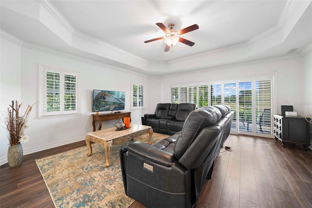 Split BedroomCeiling Fan(s) Thermostat Open Floorplan Solid Surface CountersCrown Molding Primary Bedroom Main Floor Kitchen/Family Room ComboExterior Features: