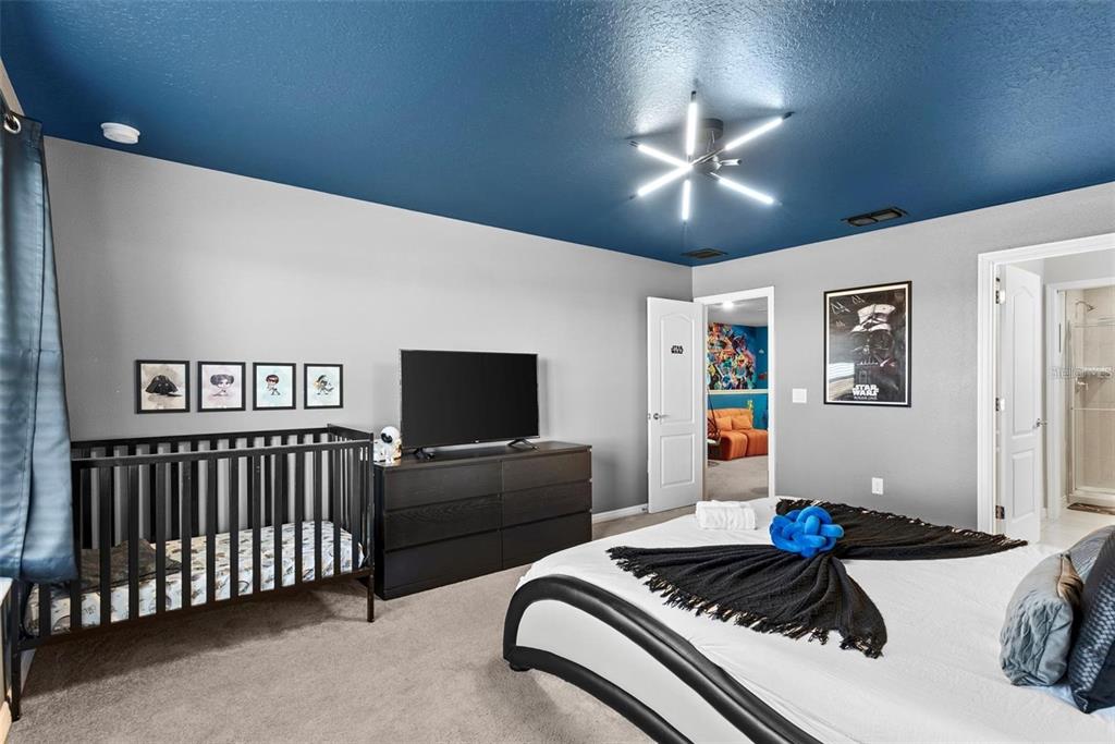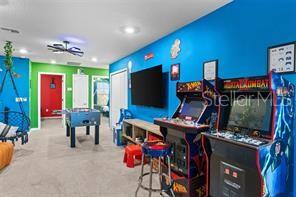 If you are looking for an amazing home away from home, this is it!. it's the dream vacation home near disney .totally furnished, extremely well decorated with detailed thematization and with many updates added. this well designed 5 bedroom unit townhouse with it's own screen enclosure private pool and no rear neighbors behind you. premium lot, back facing a big pond. enter the home through the front door into the tiled foyer which opens up into the spacious great room with ample space to accommodate the living area, dining room and games area complete with arcade games. the covered lanai and enclosed pool area is accessed via sliding doors which also provides lots of natural light into the downstairs. upstairs are 2 suites and another 2 bedroom with a full bath. upstairs loft and a lot space for family fun time.Townhouse 5 bedrooms - SOLTERRA PH 2B for Sale