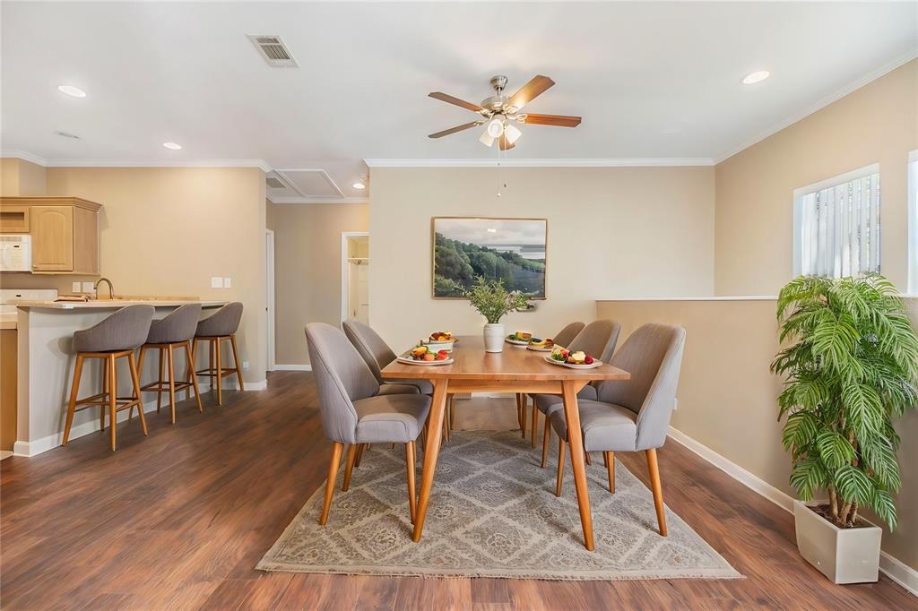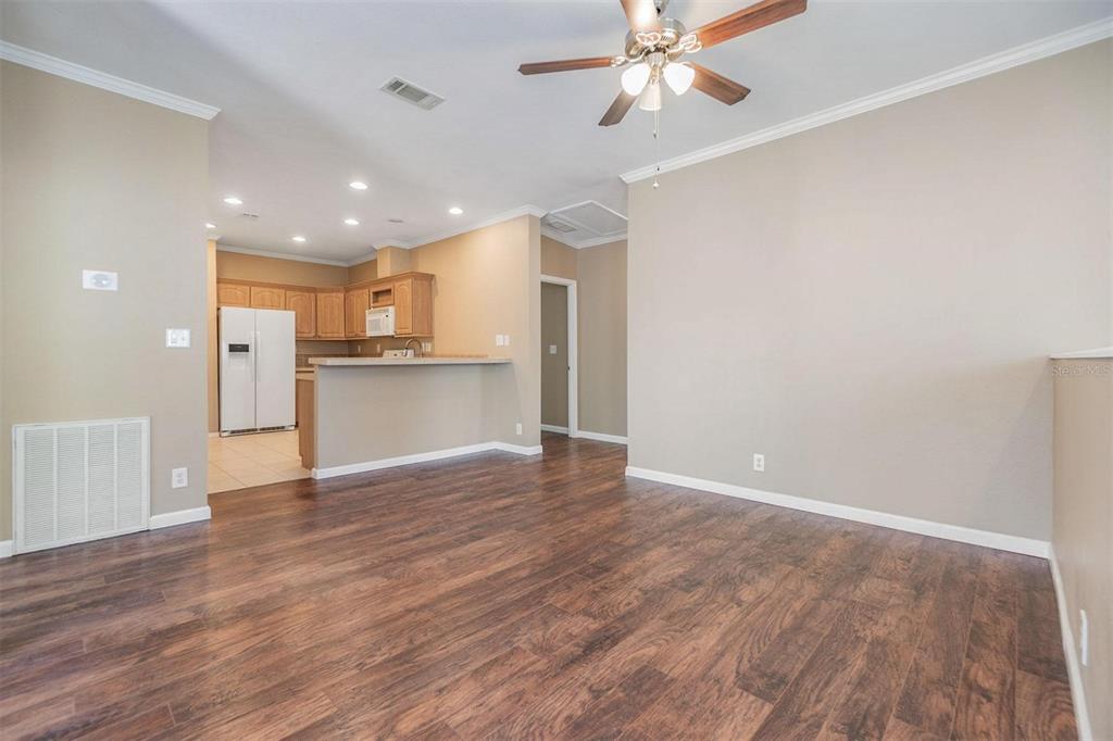 Split BedroomWet BarBuilt-in Features Walk-In Closet(s)Ceiling Fan(s) Eating Space In Kitchen Living Room/Dining Room Combo Stone Counters Open Floorplan Solid Surface Counters Solid Wood CabinetsCrown Molding Kitchen/Family Room Combo PrimaryBedroom Upstairs Pest Guard SystemAccessibility Features Central VacuumAttic FanExterior Features: