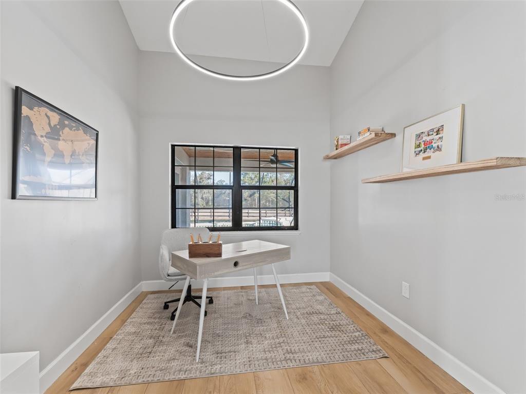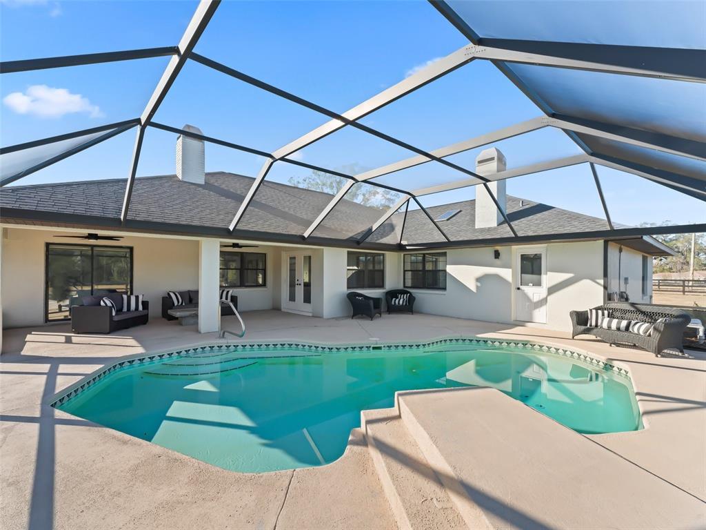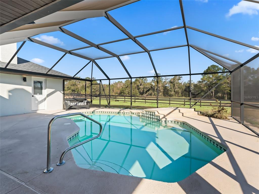 Exceptional 10+ acre turnkey farm located in the beautiful golden corridor's farmland preservation area. the farm is conveniently located just 5 minutes to wec and 10 minutes to hits making it exceptionally well-placed! this stunning 5 bedroom, 3 bathroom residence was just completely remodeled and updated from head to toe! the home not only has all new roofing, updated mechanicals, electrical, and plumbing, it also boasts an elegant interior with luxurious finishes throughout. fall in love with the open floor plan, gourmet kitchen and island overlooking the living area with views of the pool and farm. the home also has a split bedroom plan, separate office area, and separate master wing making it a home that everyone will love! the remodeled salt water pool is covered by a new screen cage which offers a stunning place to relax and view the lush paddocks. the farm is complete with a custom, 7 stall, center aisle barn with covered wash and grooming areas. additional covered space was thoughtfully designed to provide room for additional stalls (to allow 11 in total) or to keep your toys and equipment dry and protected. the barn also has a 24x12 tack-room, efficiency and bath. adjacent to the barn, you will find a newly installed and irrigated 60x 120 ggt all weather arena. your horses will love the large paddocks and acreage and all of the conveniences of owning such a beautiful farm in the heart of the ocala farm community!7675 WEST HWY 326, OCALA, FL 34482
