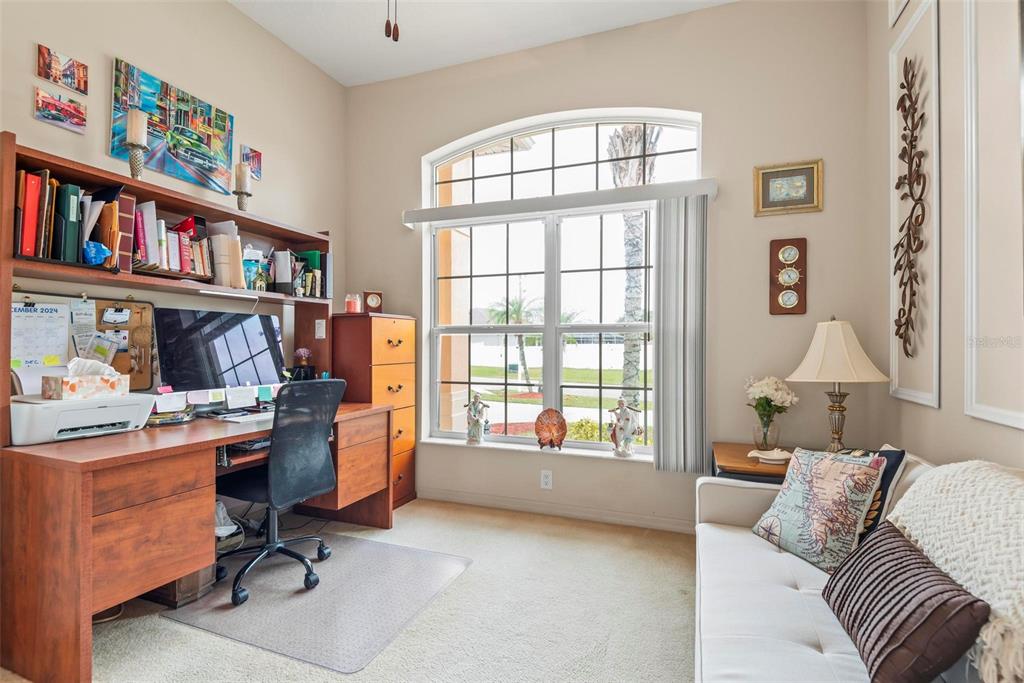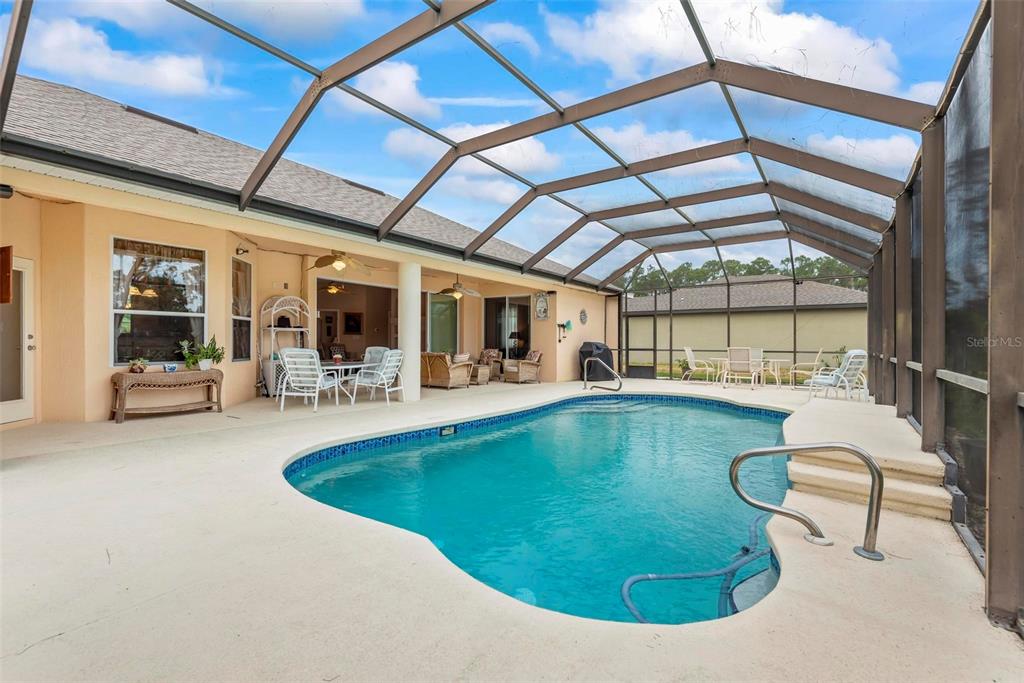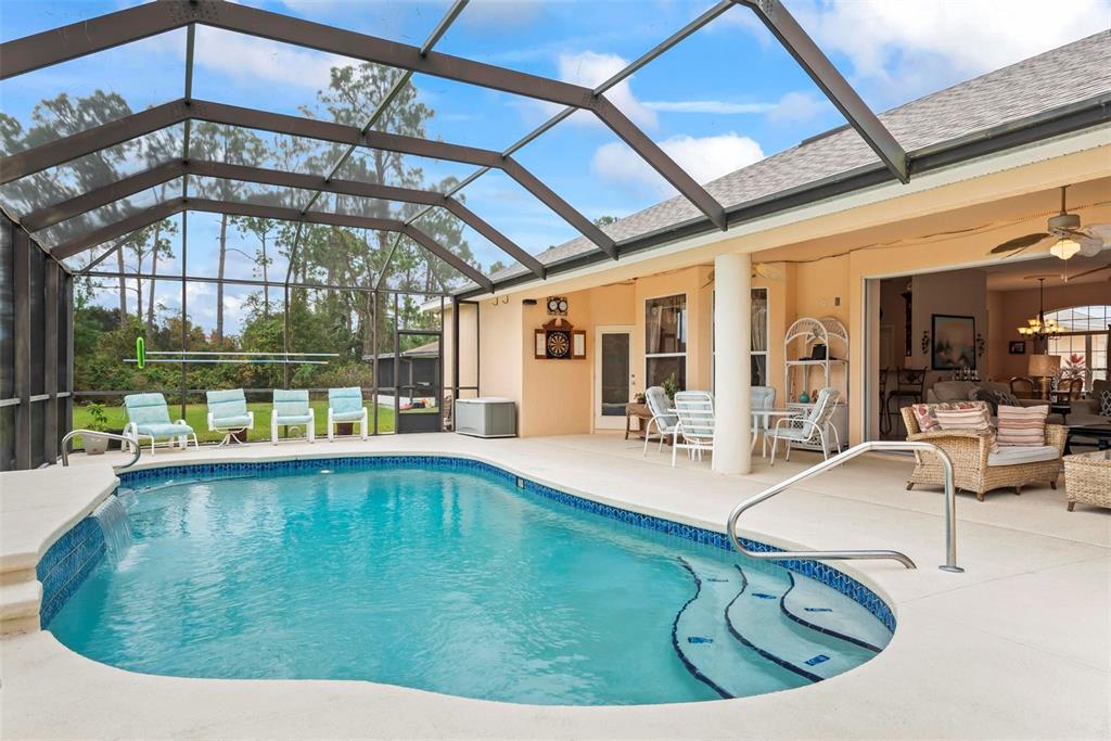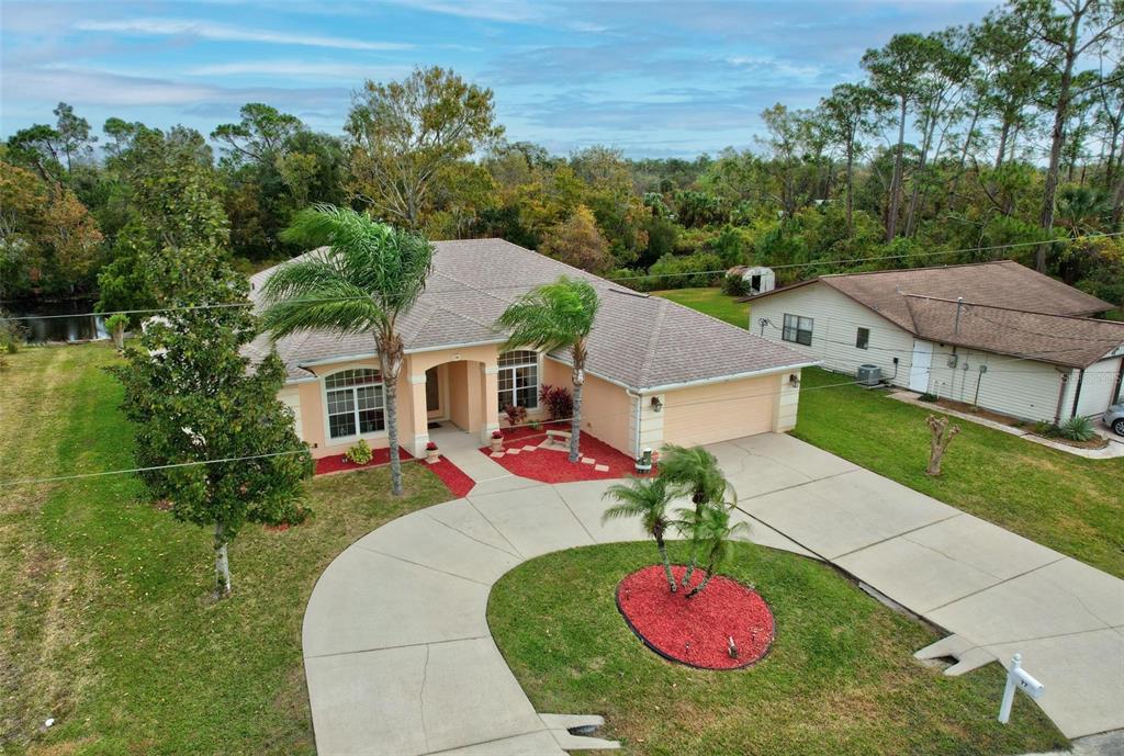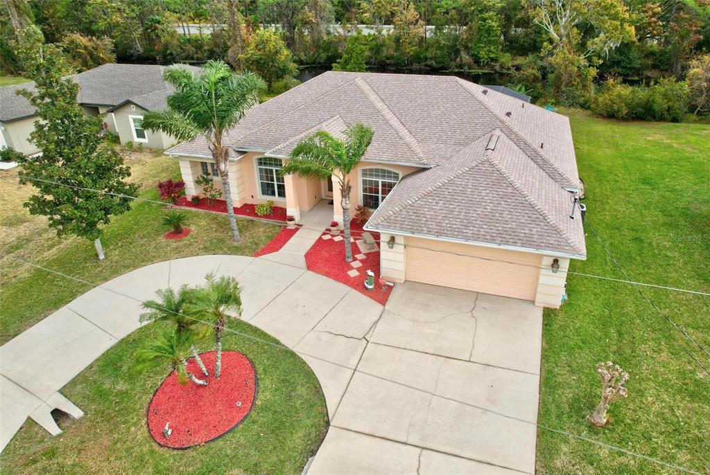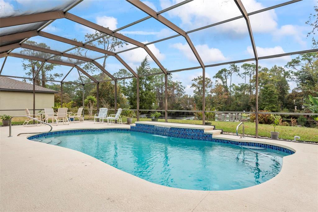 Resort living close to town. make an appointment to view this beautiful custom-built home on the belaire waterway canal on a high and dry lot. the home has 4 bedrooms and two bathrooms with double coffered ceilings. gorgeous curb appeal with a high and dry lot with a circular driveway and an oversized garage. welcoming entry with a double etched glass door to a foyer and open floor plan with 10-foot ceiling throughout. beautiful dining room with a medallion chandelier. spacious kitchen with maple cabinets and all appliances, including washer and dryer. breakfast bar and kitchen eating nook. huge windows for a very light a bright living area. owners' suite with double coffered ceiling and fan with a slider out to the pool. owners' suite has two huge built-in bookshelves. owners' bathroom with soaking tub and double vanity. living room has built in shelving and electric fireplace. gorgeous double coffered ceiling with crown molding and tropical ceiling fan. so many upgraded construction features to add to the look and feel of this custom home. enjoy the view with a triple pocket sliding door overlooking a sparkling 14x28 inground pool with a waterfall and a 6-foot-deep end. huge, screened enclosure with an extended 23x52 pool decking large enough for a table chair and to lounge around. also has a convenient separate door for access to the main bathroom. enjoy the scenery overlooking the canal to watch the natural habitat. or sit on the dock with your coffee to enjoy a sunrise. this beautiful home has new roof in 2022 and a new ac 2021. located in the quiet and convenient belle terre community that is close to shopping and schools. a short drive to daytona beach or st augustine. a short-day trip to orlandos attractions or to jacksonville.77 PERTHSHIRE, PALM COAST, FL 32164