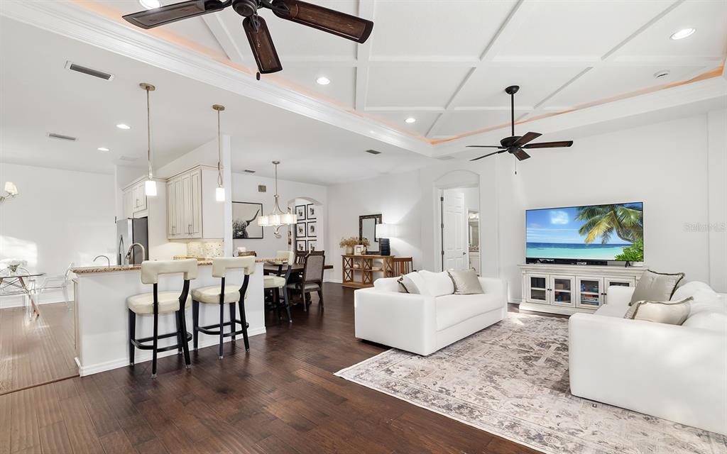 Built-in Features Walk-In Closet(s)Ceiling Fan(s) Eating Space In Kitchen High Ceilings Living Room/Dining Room Combo Stone Counters Window TreatmentsCrown Molding Kitchen/Family Room Combo Coffered Ceiling(s) Tray Ceiling(s)Exterior Features: