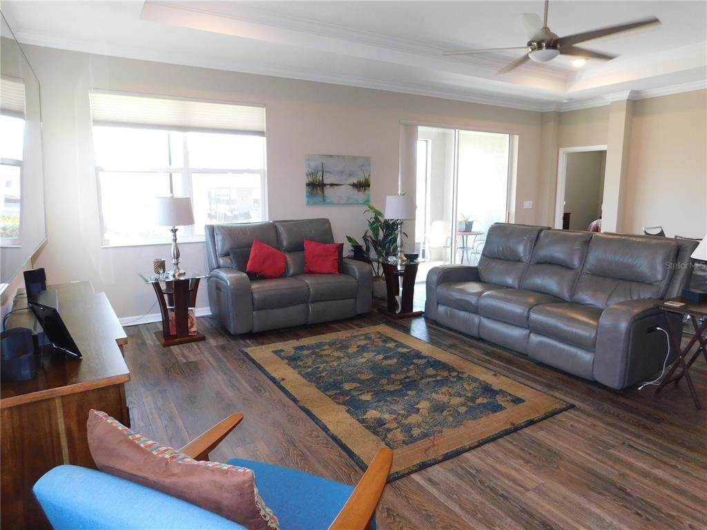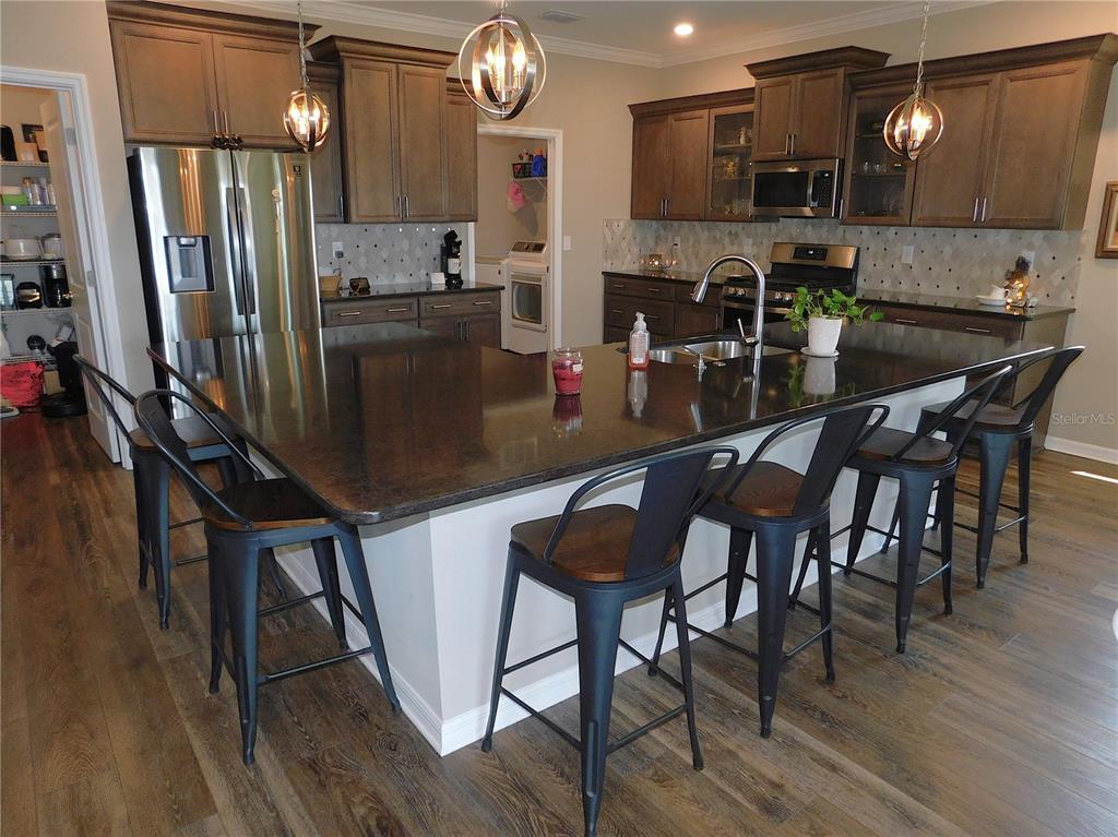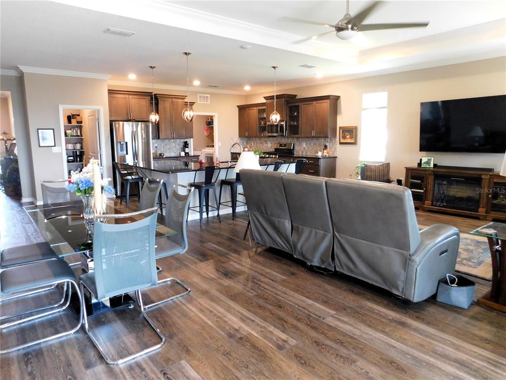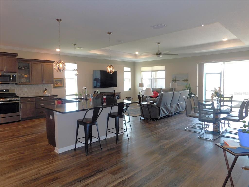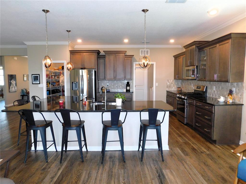 Picture perfect home in gated golf community! check out this gorgeous wisteria model located in the new neighborhood of weybourne landing. this home is on a beautiful corner lot next to a green space with no neighbors to the left or across the street. this home was new in 2020 and is loaded with upgrades galore including vinyl plank flooring throughout, and an "l" shaped island, quartz counter tops and the 42" maple harmony cabinets, tile backsplash, upgrade appliances including gas range, walk-in pantry highlights this gourmet kitchen. out back you can enjoy the screened in lanai or the outside brick paver patio full length of house. french doors to the flex room gives you a private area for your office/den or formal dining room. inside laundry has a built-in cabinet with a granite countertop and a built-in laundry/utility sink plus a matching upper cabinet. this home includes numerous upgrades, such as whole house softening & purification system, crown molding, recessed ceiling in great room & primary bedroom, south atlantic energy solutions and solar fan for lower electric bills & so much more. see attachments for the numerous upgrades. the hoa fee in weybourne provides trash pickup, pickle ball, putt putt, an outdoor deluxe pavilion with bbq area, dog park, golf cart paths, rec center with large ballroom, card room, exercise room, library and common tv, bar area, full kitchen. why go through the hassle of building when you can have this home today? a must see!!7750 SW 87TH, OCALA, FL 34481