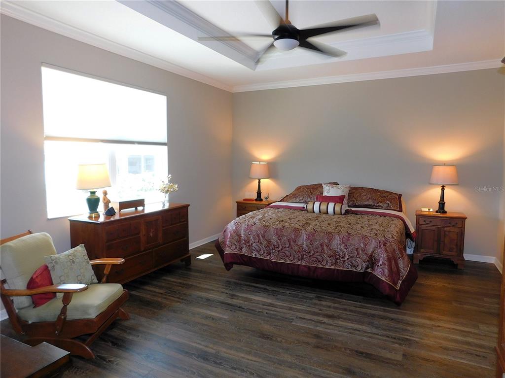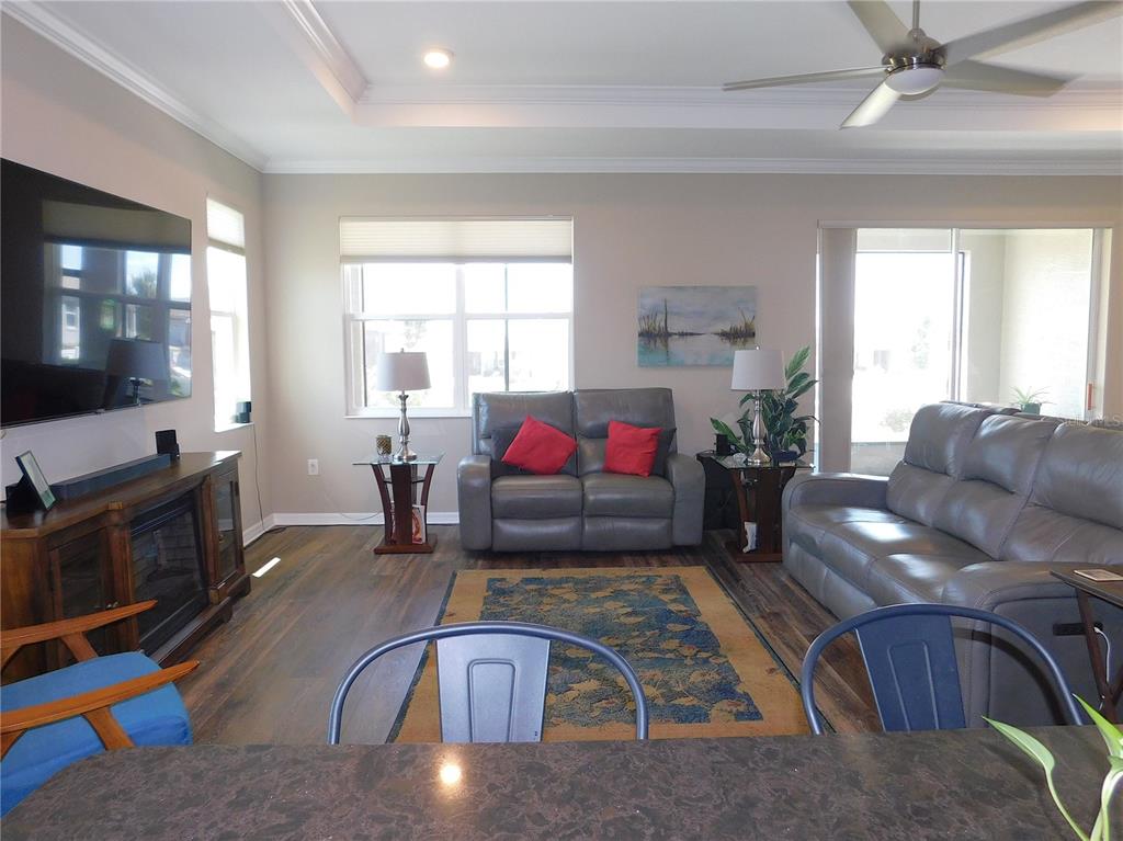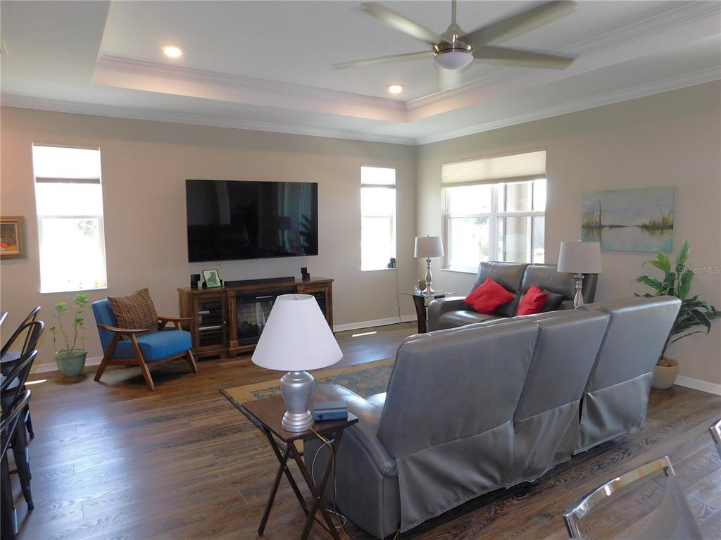 Split Bedroom Walk-In Closet(s)Ceiling Fan(s) Living Room/Dining Room Combo Window Treatments Solid Surface CountersCrown Molding Primary Bedroom Main Floor Tray Ceiling(s) Smart HomeAttic FanExterior Features:
