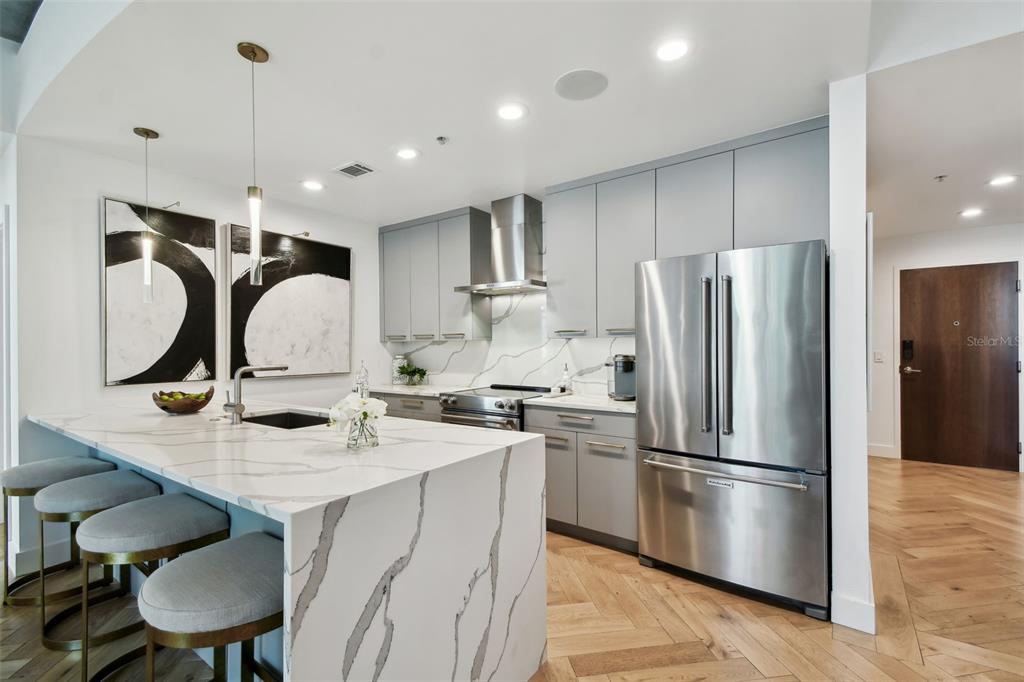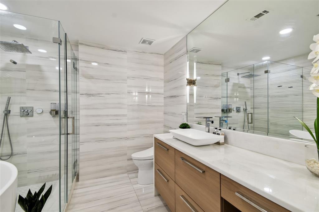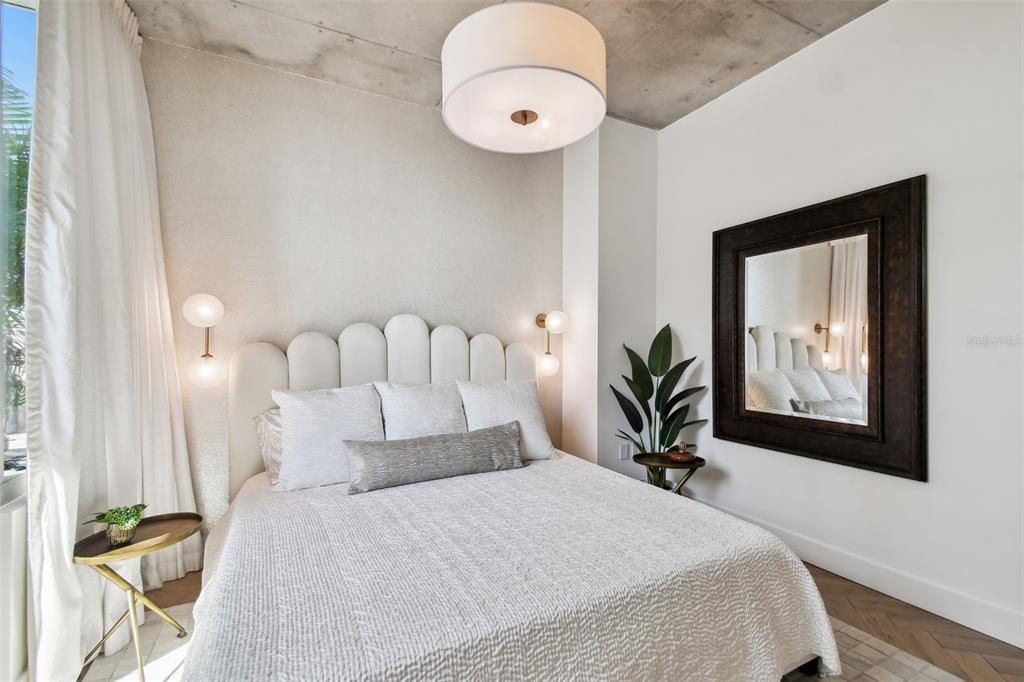 Experience the epitome of french modern luxury in this exquisitely remodeled high-rise condo, designed by tampa bay’s renowned debra ackerbloom interiors. nestled in the esteemed skypoint condominiums, this 2-bedroom, 2-bathroom home redefines sophisticated living with its seamless blend of timeless design, curated textures, and alluring ambiance. perched on the coveted 8th floor sky deck, this one-of-a-kind floor plan offers an extraordinary outdoor patio - a rare feature in this sought-after location. step outside to a private extension of your living space, with effortless access to the tropical oasis of the pool and spa. find tranquility on the relaxing garden terrace enveloped by lush landscaping. social spaces abound including a clubroom ideal for entertaining. upon entering the home, the foyer captivates with french white oak herringbone wood floors and layered wall coverings that lead the way to two custom shelving units, ideal for displaying curated art pieces. the open-concept living space is anchored by floor-to-ceiling windows that overflow the home with natural light and offer breathtaking views of downtown tampa’s skyline. the kitchen and bathrooms feature hand-selected stone countertops and wall cladding, with sleek modern lighting enhancing the elegant aesthetic. the calming primary bedroom is a serene retreat, featuring an ensuite bath with a freestanding soaking tub and natural white quartzite countertops that evoke a spa-like experience. the versatile secondary bedroom offers built-in cabinetry and a desk, making it perfect for both a home office and guest room. this is more than a home; it’s a lifestyle defined by luxury, thoughtful design, and a unique connection to the best amenities skypoint has to offer. benefit from the 24-hour concierge service, ideal for seamless acceptance of packages, deliveries, and welcoming guests. fitness enthusiasts will appreciate the dual fitness centers featuring a cardio room with a dedicated yoga area and a separate weight training room. indulge in the convenience of ground-floor restaurants and immerse yourself in the vibrant culture of downtown tampa, with festivals, concerts, and wellness events just moments away. schedule your private viewing of this property today.777 N ASHLEY #806, TAMPA, FL 33602