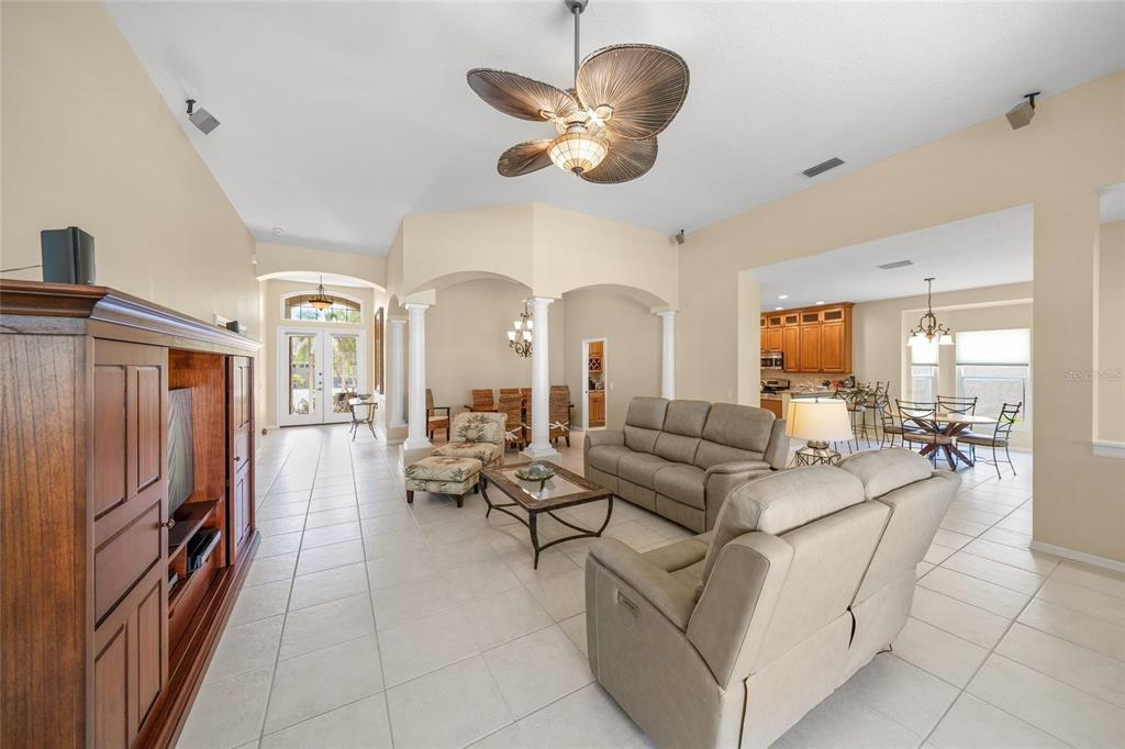 Split Bedroom Walk-In Closet(s)Ceiling Fan(s) Eating Space In Kitchen High Ceilings Stone Counters Open Floorplan Window Treatments Solid Surface Counters Solid Wood CabinetsExterior Features: