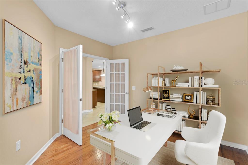 Live the florida lifestyle in an exclusive gated enclave with only 11 other neighbors! this home is a rare find nestled behind the gates of tuscany located in the heart of tampa palms. this meticulously maintained home features 4 bedrooms+office+bonus room, 3.5 bathrooms, 2,806 square feet and a 2 car garage. as you walk in through the front door you’ll notice the elegant french doors that open to the sun filled office. you will love the architectural details of arched walkways, oversized tile floor, thick crown molding, and more! enjoy the ambiance of the formal dining room which is conveniently located across from the oversized kitchen. the kitchen features 42” solid wood maple cabinets, thick granite countertops, sleek stainless steel appliances, walk-in pantry, large kitchen island, breakfast bar, pendant lighting and extra lighting under the cabinets. no expense spared with 3/4" real hardwood floors in the great room, primary retreat, bonus room, formal dining room and secondary bedrooms. the great room is generous in size and is complimented by crown molding, and 8 foot sliding glass doors that lead to the oversized screened lanai. relax at the end of a busy day in the sumptuous primary retreat which is conveniently located on the first floor. it features fine finishes and an en suite bathroom with maple cabinetry, granite countertops, garden bathtub, spacious walk-in closet, and a separate step in shower. the second floor reveals an exceptionally large bonus room (23’ x 17’), a en suite 2nd primary bedroom with a full bath. there are two additional bedrooms and another full bathroom with maple cabinets and granite counter tops. need extra storage? then you'll love the 2-car attached garage with a finished floor and extra storage shelves. the expanded screened-in lanai is the perfect place to relax, entertain or just chill in the warm summer breeze. other features include a surge protector for the entire home, 4 flood lights on the exterior wall and security system. the hoa fees include low maintenance living such as cutting the grass, gate and private road maintenance. the property's prime location ensures convenience to top rated schools, shopping centers, and restaurants. with easy access to i-75 and proximity to the ymca, usf, florida hospital, moffitt, veterans hospital, wiregrass mall, and tampa premium outlets.7917 TUSCANY WOODS, TAMPA, FL 33647