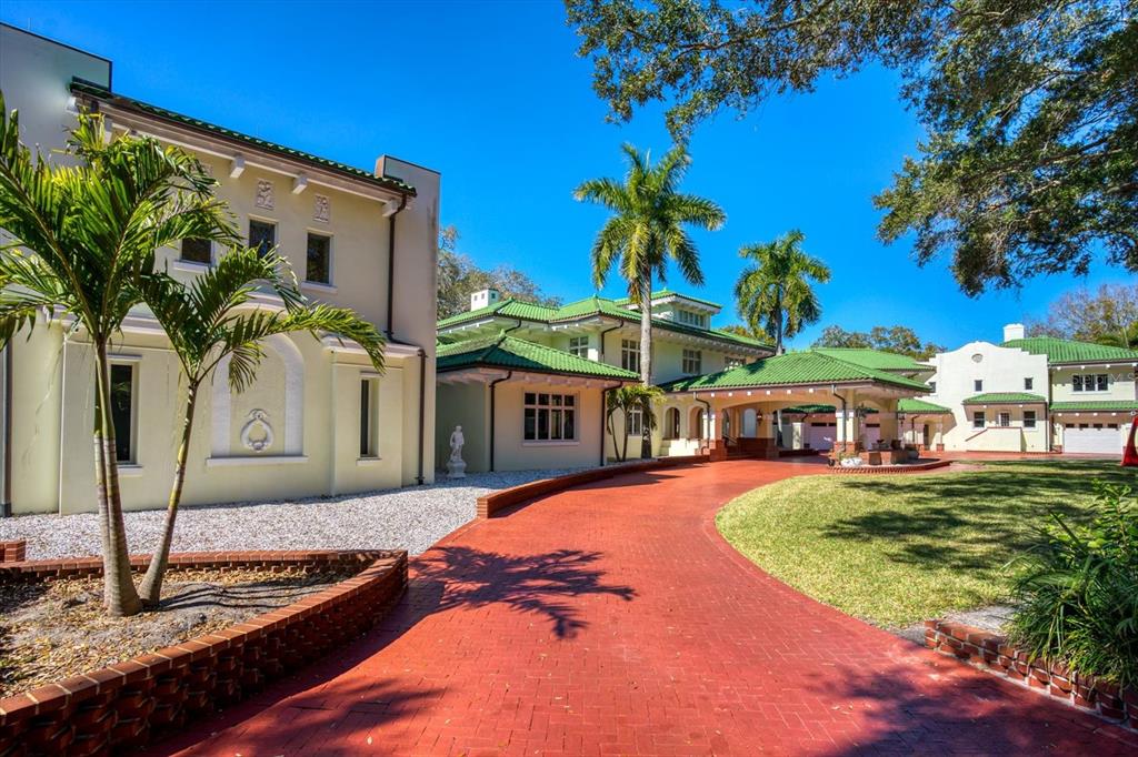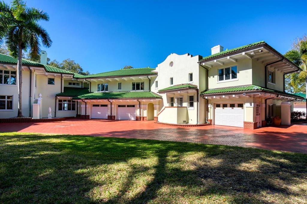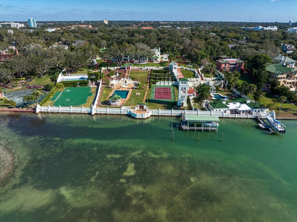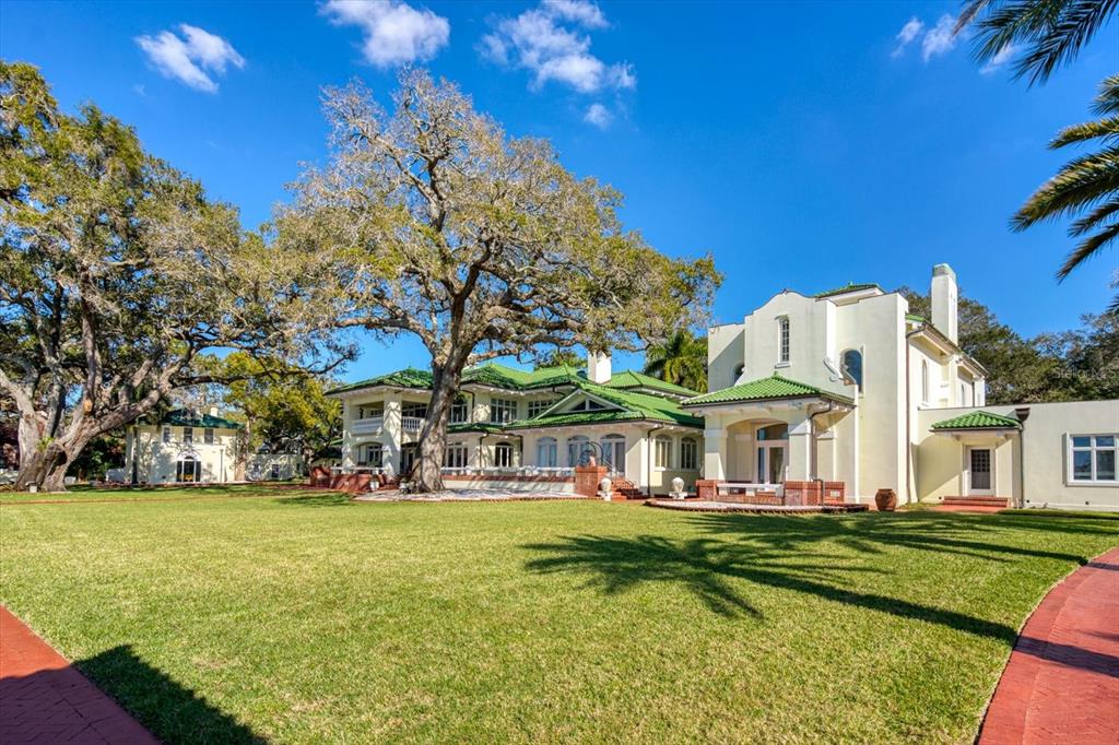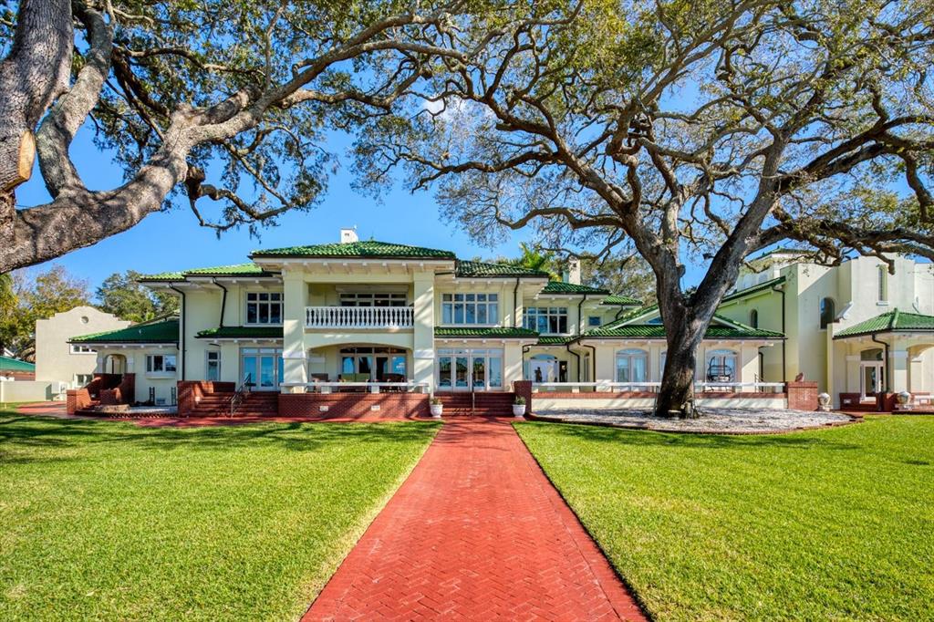 A stunning achievement in design and location beyond comparison. incomparable gulf views, dramatic architectural details and a highly coveted location combine for the height of luxury in this mediterranean masterpiece overlooking the widest expanse of clearwater harbor. “century oaks” is the namesake of this storied estate that has entertained u.s. presidents, heads of state and is located on the grounds of the ft harrison used during the spanish – american war. commanding an unmatched 5.6 acres with 213 feet of direct waterfront, the 16,472 square foot mansion presents a rare opportunity to own one of the most iconic mansions in the state of florida. strategically positioned atop a large bluff, the sprawling residence was purposefully built to capitalize on vistas spanning eye of the gulf, sand key and the clearwater skyline. soaring cathedral ceilings, multiple windows and an expansive open plan create a welcoming setting for luxurious family living and entertaining—whether your guest list numbers two or 200. truly an achievement in design and décor, the stunning 10-bedroom residence combines the artistry and grandeur of old world elegance with the sophistication and convenience of modern amenities. beyond the distinguished porte cochere, the two-story layout offers a pleasing blend of formal and informal spaces which can accommodate any entertaining need including a grand entry hall, massive ballroom, banquet-size dining room and an inviting family room. serving any occasion is the kitchen, equipped with everything a professional chef requires including a aga cast iron range, two warming ovens, subzero refrigerator, coffee station, breakfast bar, work island and casual dining space. morning coffee is best served on the balcony as boats sail by and dolphins play steps away from your backyard. evening cocktails become elevated on the entertainment terrace when gazing at a technicolor sunset over the sparkling waters of the gulf of mexico. residents can enjoy numerous activities at home as the property includes a plush home theater, tennis and basketball courts, two swimming pools and two deep water docks that can accommodate yachts up to 60 feet. augmenting the main house are two equally elegant guest homes. this peerless setting of waterfront splendor is conveniently located near cultural and entertainment venues, fine dining and shopping and award-winning gulf beaches. tampa international airport is just a short drive away. adjacent properties to the north and south (800 and 820 druid road) are available for purchase creating a large compound opportunity.802 DRUID S, CLEARWATER, FL 33756