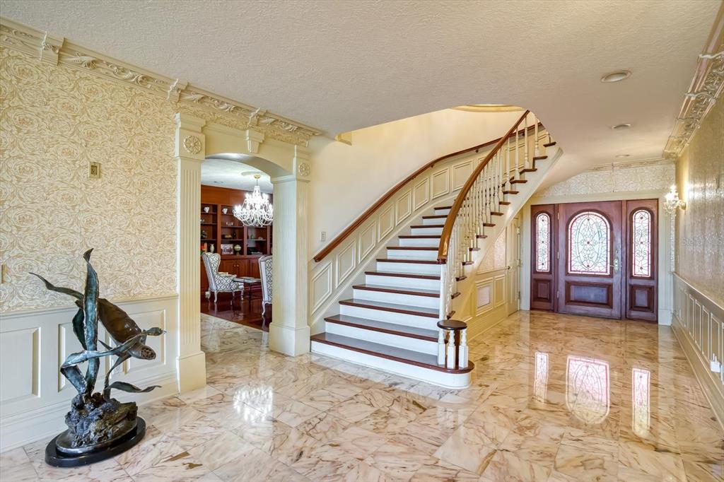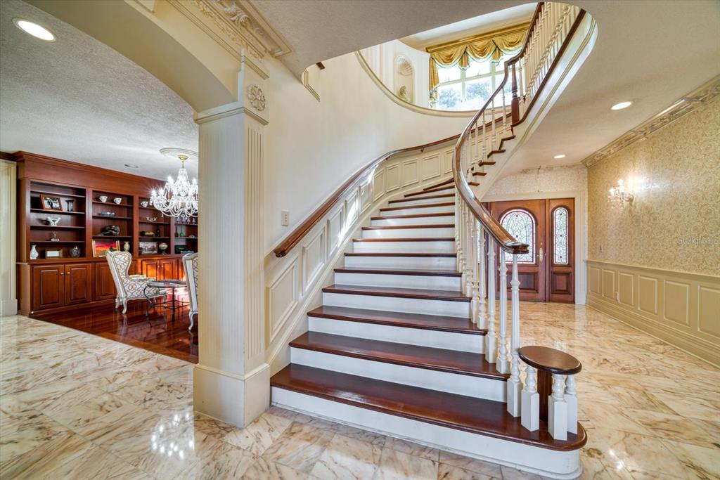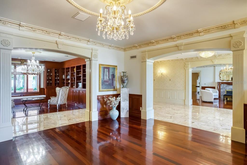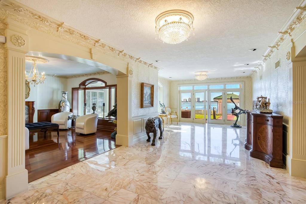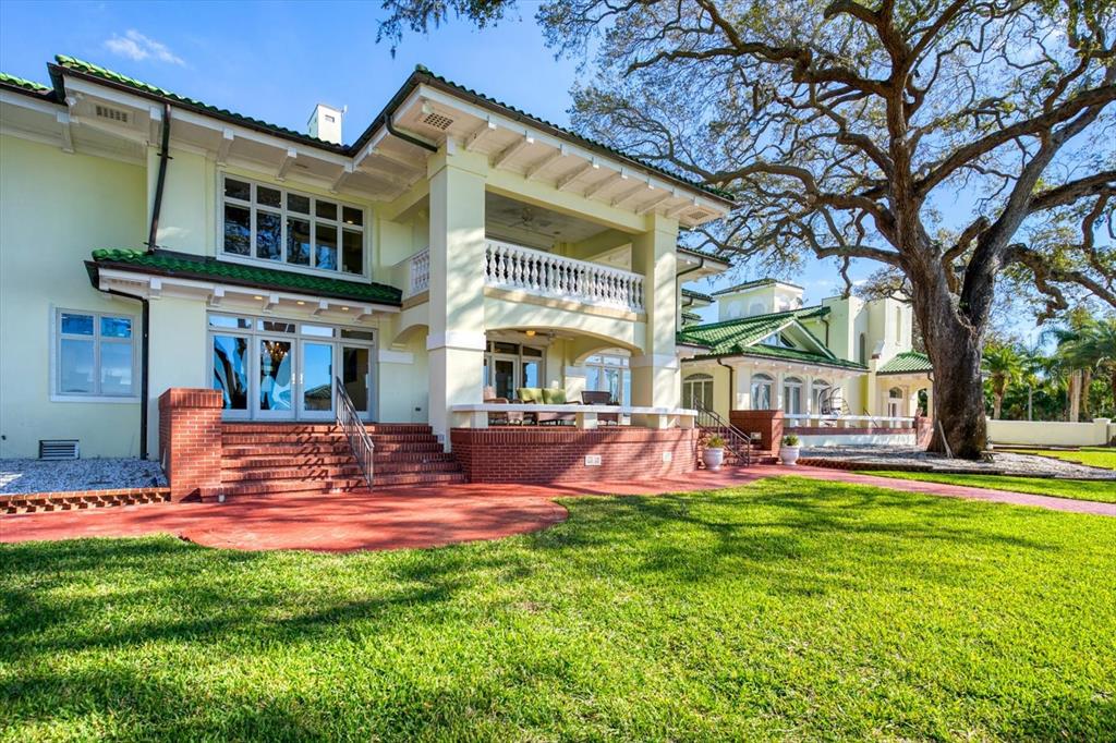 A stunning achievement in design and location beyond comparison. incomparable gulf views, dramatic architectural details and a highly coveted location combine for the height of luxury in this mediterranean masterpiece overlooking the widest expanse of clearwater harbor. “century oaks” is the namesake of this storied estate that has entertained u.s. presidents, heads of state and is located on the grounds of the ft harrison used during the spanish – american war. commanding an unmatched 5.6 acres with 213 feet of direct waterfront, the 16,472 square foot mansion presents a rare opportunity to own one of the most iconic mansions in the state of florida. strategically positioned atop a large bluff, the sprawling residence was purposefully built to capitalize on vistas spanning eye of the gulf, sand key and the clearwater skyline. soaring cathedral ceilings, multiple windows and an expansive open plan create a welcoming setting for luxurious family living and entertaining—whether your guest list numbers two or 200. truly an achievement in design and décor, the stunning 10-bedroom residence combines the artistry and grandeur of old world elegance with the sophistication and convenience of modern amenities. beyond the distinguished porte cochere, the two-story layout offers a pleasing blend of formal and informal spaces which can accommodate any entertaining need including a grand entry hall, massive ballroom, banquet-size dining room and an inviting family room. serving any occasion is the kitchen, equipped with everything a professional chef requires including a aga cast iron range, two warming ovens, subzero refrigerator, coffee station, breakfast bar, work island and casual dining space. morning coffee is best served on the balcony as boats sail by and dolphins play steps away from your backyard. evening cocktails become elevated on the entertainment terrace when gazing at a technicolor sunset over the sparkling waters of the gulf of mexico. residents can enjoy numerous activities at home as the property includes a plush home theater, tennis and basketball courts, two swimming pools and two deep water docks that can accommodate yachts up to 60 feet. augmenting the main house are two equally elegant guest homes. this peerless setting of waterfront splendor is conveniently located near cultural and entertainment venues, fine dining and shopping and award-winning gulf beaches. tampa international airport is just a short drive away. adjacent properties to the north and south (800 and 820 druid road) are available for purchase creating a large compound opportunity.802 DRUID S, CLEARWATER, FL 33756