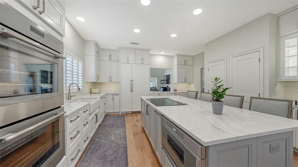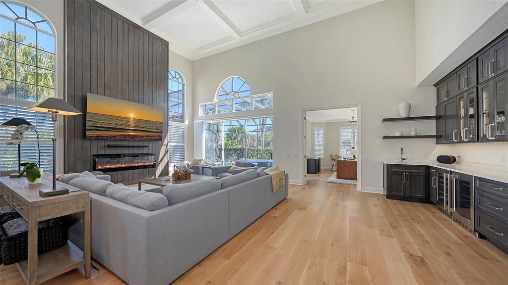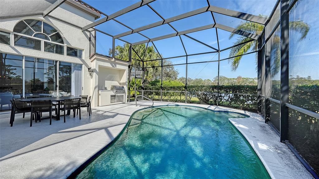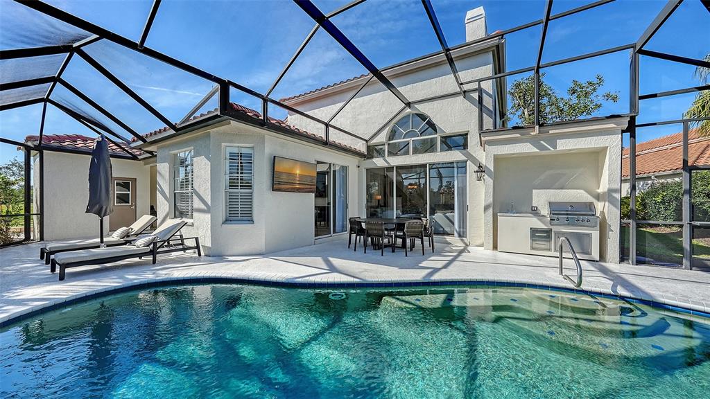 Wow!! located in the prestigious, gated community of prestancia within the villa fiore section, this spacious 3,852 sq ft single-family home offers 3 en-suite bedrooms, an office, plus a powder room and pool bath. recently renovated in december 2024, the home is situated on the 14th fairway of the tpc golf course, providing scenic water views and privacy. upon entering, you will be greeted by a large and open great room with soaring ceilings and abundant natural light, replete with electric fireplace and wet bar. the newly renovated chef’s kitchen boasts designer appliances, stone countertops, an oversized island with seating, and wood cabinetry. other notable details include wide plank french oak floors throughout the home, schobek chandeliers, google smart home technology, and custom closets in every room. the great room and office open up to a large, screened-in patio with a heated pool, an outdoor kitchen with a built-in grill, sink, and a separate pool bath—perfect for entertaining. the main level also features a spacious owner’s suite with sliding door access to the patio, his and hers bathrooms, and two walk-in closets. a dedicated office with water views is perfect for working from home. upstairs, two large bedrooms each have their own private bathroom. additional highlights include a two-car side-entry garage with epoxy flooring, tile roof (2014), re-plumbed water lines (2005), 3 sets of impact sliding glass doors (2025), and air conditioning systems with new ductwork (2018/2025). optional membership to the prestancia golf club provides access to two 18-hole golf courses, dining, and social activities. with a rare opportunity to own a home in villa fiore, this property is move-in ready and waiting for your personal touch. don’t miss out—schedule a viewing today!8025 VIA FIORE, SARASOTA, FL 34238