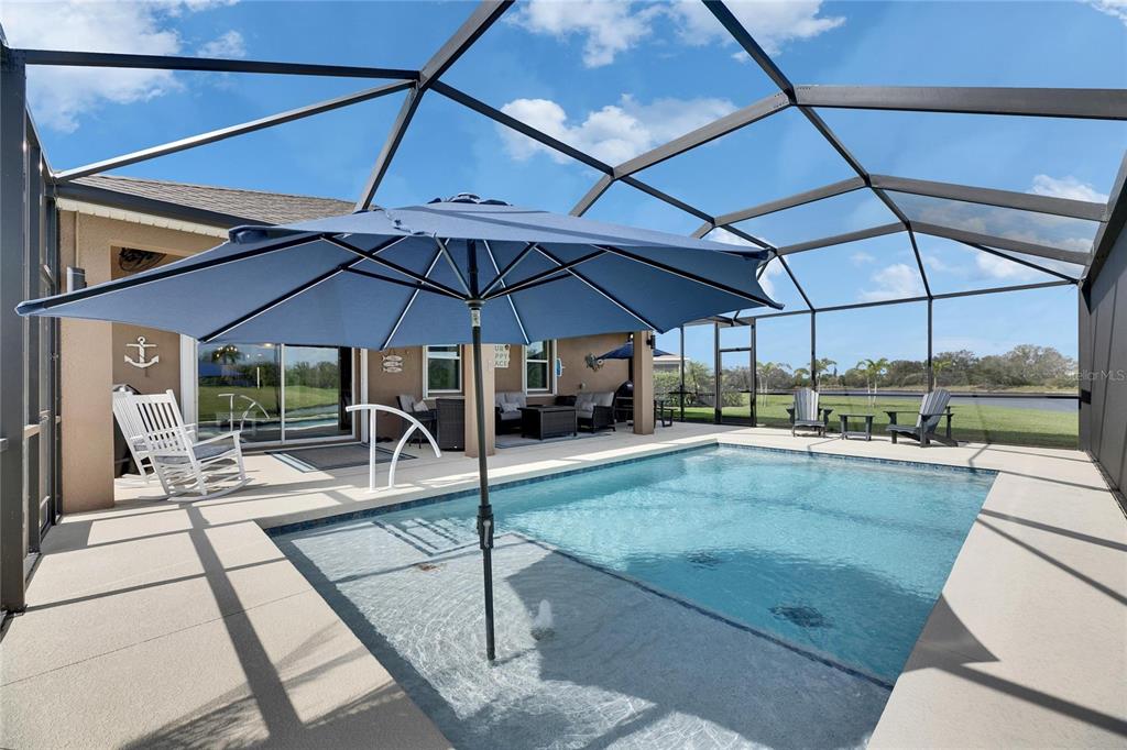 Immaculate move-in-ready 3 bedroom, den, heated custom pool home in a gated community on a cul-de-sac. cross the threshold and the first thing you'll see is the oasis style pool, sundeck with a fountain in the pool. you'll love sitting out there with a cuppa or glass of vino, relaxing after a long day. enjoy the pond view and array of the wildlife, birds, fish, turtles. live the comfy floridian lifestyle that everyone dreams of. perfect open floor plan for entertaining, the kitchen is open to the great room with sliders to the pool. the home includes many upgrades. the gourmet kitchen with 42” cabinetry, a center island, stainless steel appliances, granite countertops and under mount stainless steel sink make it a breeze for everyone at the party to feel like they're at the center of the fun and festivities. the master suite includes a walk-in closet with a luxurious en-suite bath featuring double sinks, granite countertops, a brushed nickel shower enclosure. great views of the pond and pool. the 2nd & 3rd bedrooms share a beautiful hall bath with granite countertops and upgraded tile. the laundry room is tucked away on the first floor with ample space to keep the laundry contained and out of sight. the den with wood flooring is perfect for a home office or possible 4th bedroom. the upstairs bonus room the perfect location for a media room, playroom, or additional living space. this energy star-qualified marco floor plan home offers both style and efficiency. don't miss out, call for your private viewing today. it's guaranteed to make you smile!8036 111TH E, PARRISH, FL 34219