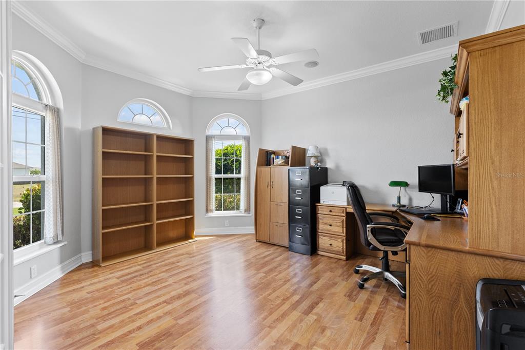 Split BedroomBuilt-in Features Walk-In Closet(s)Ceiling Fan(s) Eating Space In Kitchen High Ceilings Thermostat Window TreatmentsCrown Molding Primary Bedroom Main Floor Coffered Ceiling(s)Cathedral Ceiling(s)Accessibility Features Chair RailExterior Features: