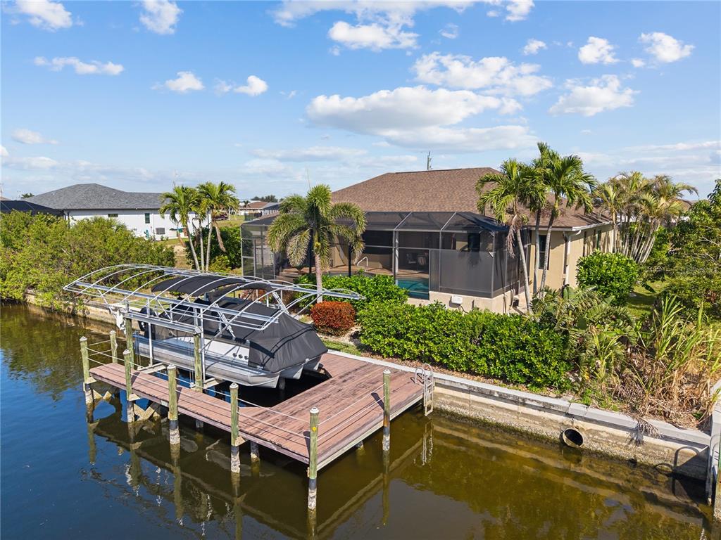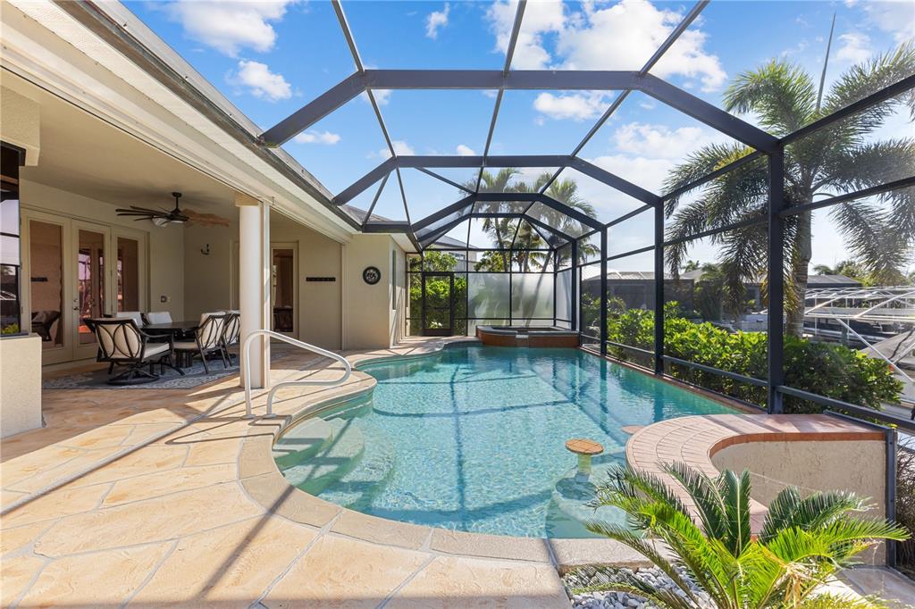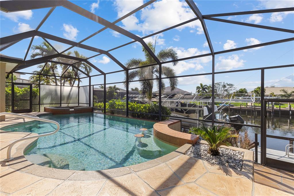 One or more photo(s) has been virtually staged. experience the ultimate in florida living with this exquisite furnished 4-bedroom, 2.5-bathroom waterfront pool home with jacuzzi and 3-car garage, perfectly situated in the heart of cape coral—and not located in a flood zone. from the moment you arrive, the lush, meticulously maintained landscaping sets the tone for what lies beyond the grand double-door entrance. inside, you’re welcomed by soaring ceilings, abundant natural light, and stunning canal views through expansive glass french doors. the chef’s kitchen is a dream, offering a spacious cooking island, abundant cabinetry, and a large walk-in pantry with automatic lighting. just off the kitchen, a spacious laundry room with a deep freezer adds convenience and storage. all four bedrooms are generously sized with large closets, while the luxurious primary suite features an oversized spa-style bathroom with a walk-in shower and dual showerheads—ideal for unwinding at the end of the day. step out back and enjoy your own private resort-style oasis. the heated pool features built-in bar stools, and the heated jacuzzi provides the perfect spot to relax while soaking in peaceful water views. an outdoor half bath adds convenience for guests, making this space ideal for entertaining. for boating enthusiasts, the property includes a 33-foot dock with a 10,000 lb. boat lift, which extends 20 feet into the canal for easy access to open water. this turnkey home also includes numerous recent upgrades: a whole-house reverse osmosis system, electric storm shutters (2023), 16 impact windows (2023), a new roof (2021), a full hvac system (2016), an irrigation system, a boat lift canopy (2022), and a concrete seawall (2004). the 3-car garage is fully equipped with a generator hookup, adding peace of mind. a full home and pool inspection and recent appraisal (feb 2025) provide added confidence for buyers. located close to top-tier dining, shopping, boating, and florida’s beautiful beaches, this exceptional home truly offers it all. schedule your private tour today—this is florida waterfront living at its finest!810 NW 36TH, CAPE CORAL, FL 33993