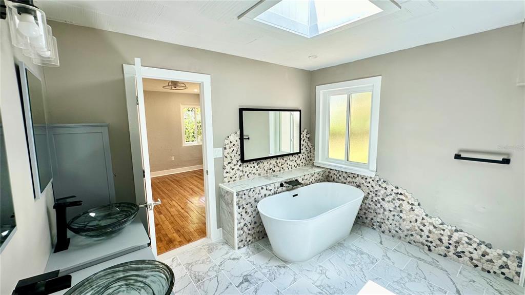 Discover the perfect blend of coastal charm and modern convenience in this tastefully remodeled 2-bedroom, 2-bathroom single-family home in the heart of new smyrna beach, florida. boasting 1,480 square feet of living space, this gem features an oversized primary en-suite with a luxurious soaker tub, original hardwood floors in the living room and bedrooms, cedar wood shelves in guest bath, wood planked laundry room ceiling, skylights throughout, and a large bonus family room. nestled among mature trees and offering a spacious backyard, this property also provides the convenience of a paved driveway with extra parking, a new water heater, new roof, new windows, and the ability to charge your rv or electric vehicle. enjoy the ultimate florida lifestyle, just a golf cart or e-bike ride away from the famous flagler sandy beach, local shops, dining, and events on canal street. with two neighborhood golf courses and a boat launch just a mile away, and no hoa fees to worry about, this home is the perfect oasis for those seeking the quintessential florida coastal experience. don't miss your chance to make this your new slice of paradise.812 FAULKNER, NEW SMYRNA BEACH, FL 32168