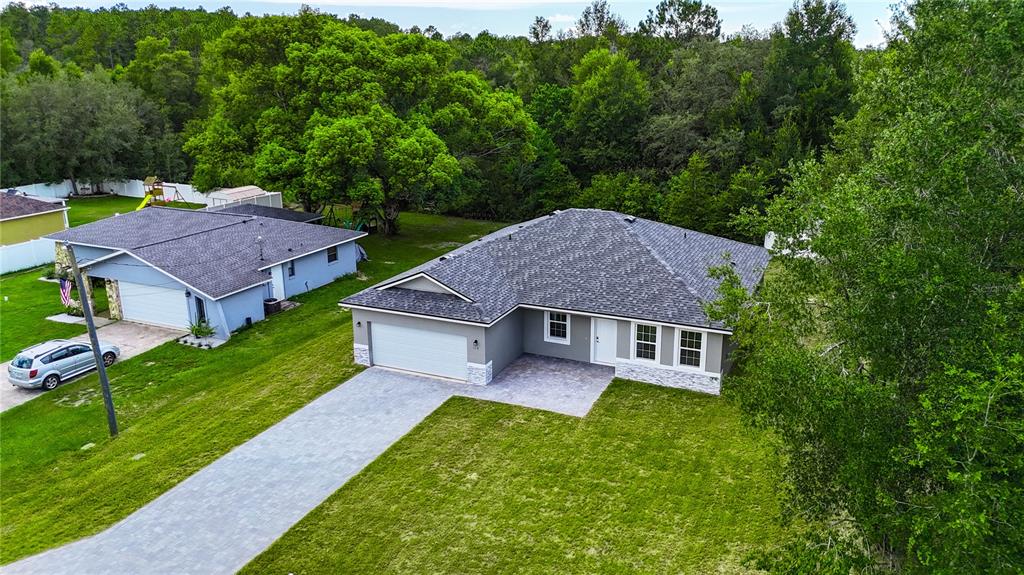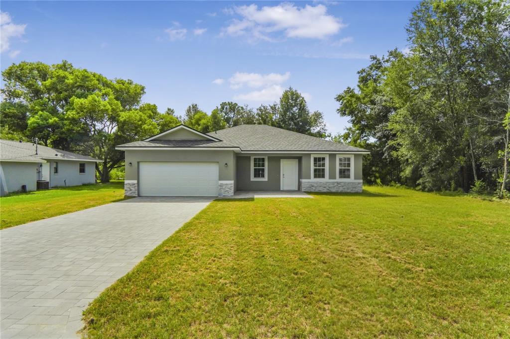 Brand new construction with an amazing location, near the golf course on a nice and quiet street. with not one but two suites, this move-in ready contemporary home offers the perfect blend of modern design and practical living, featuring four spacious bedrooms and three beautifully appointed bathrooms. step inside to find an upgraded tile flooring throughout, exuding a sleek and elegant ambiance. each bathroom is meticulously crafted with luxurious finishes including porcelain tile inside the shower space, adding a touch of sophistication to your daily routine. the outdoor space is equally impressive, with a covered lanai, a generous yard and a one of a kind paved driveway, excellent option for entertaining or basking in the glorious florida sunshine. perfectly situated near schools, parks, and all essential amenities, this property promises a lifestyle of convenience and accessibility. don’t miss your chance to be the proud owner of this gem in citrus springs!8210 N POCONO, CITRUS SPRINGS, FL 34434