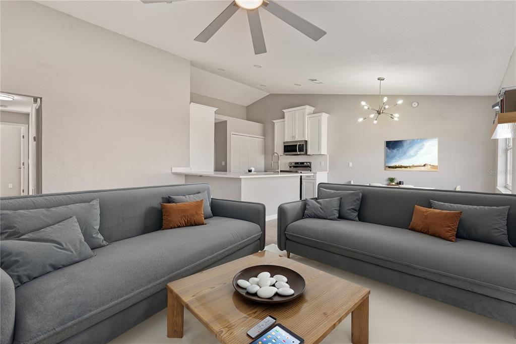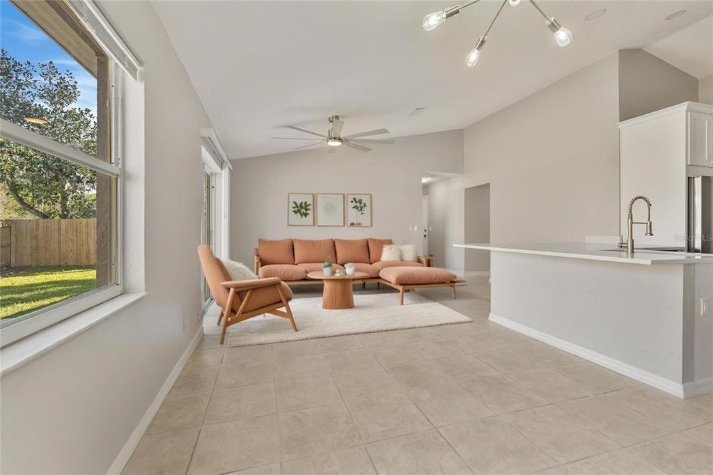 Discover the serene beauty of this home. gorgeous 3-bedroom, 2-bathroom 2 car garage half a duplex!! features fenced backyard and a spacious floor plan with high ceiling that seamlessly blends functionality with style. the open-concept living area boasts ample natural light, creating a warm and inviting atmosphere. the well-appointed brand new kitchen with new quartz countertops features sleek new stainless steel appliances, perfect for culinary enthusiasts. the house also features many other upgrades, including a brand-new roof (the better type with 30-year shingles), renovated bathrooms with new vanities, an hvac system from 2016, new paint in and out, plus new light fixtures, faucets, toilet doors/closets, and so much more. conveniently located near all major highways, shopping, restaurants, and entertainment. all measurements aren't accurate should be verified by buyer, virtual staging has been added to some of the pictures.823 KOKOMO, PORT ORANGE, FL 32127