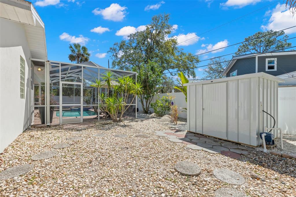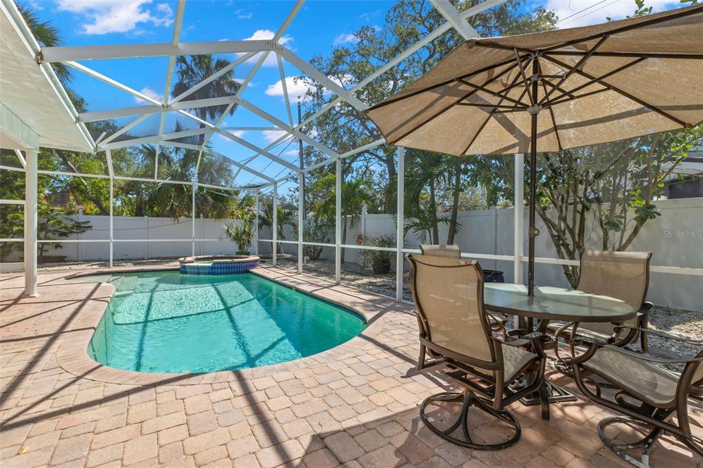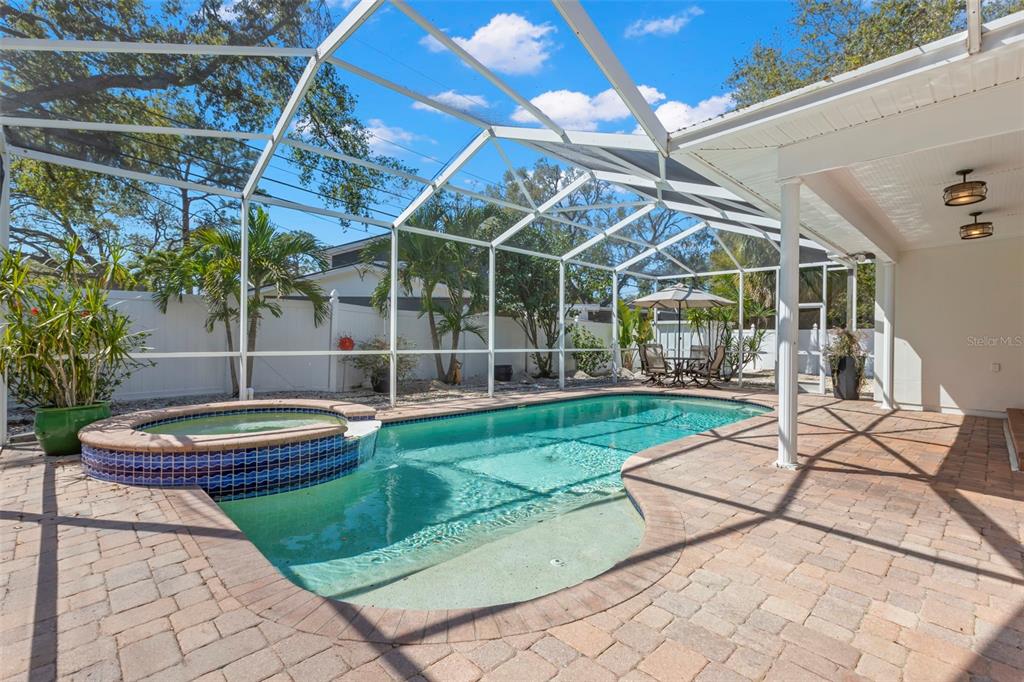 Nestled on a peaceful, tree-lined street in the coveted neighborhood of jungle shores, this stunning home offers an exceptional blend of elegance, comfort, and thoughtful design. from the moment you step through the front door, you'll be captivated by the home's unique beauty and meticulous attention to detail. vaulted ceilings create a sense of grandeur, enhancing the spacious open floor plan. a wall of sliding glass doors in the living area invites an abundance of natural light and frames breathtaking views of your private backyard retreat. a cozy wood-burning fireplace adds warmth and charm to be enjoyed from the living room, kitchen, and dining room. the chef-inspired kitchen is a masterpiece of form and function, featuring granite countertops, a breakfast bar, and high-end appliances including a zline gas range and new samsung bespoke customizable fridge and dishwasher. the split floor plan sets the master suite on its own side of the home, a true private sanctuary, boasting a large walk-in closet and a spa-like en suite bath with a soaking tub and a walk-in shower. on the opposite side of the home, both guest bedrooms offer generous walk-in closets, providing ample storage and comfort. here you will also find two additional full baths, one easily accessed from the pool. step outside to the backyard paradise where you’ll enjoy a sparkling salt water pool, large paver pool deck, and a large fully fenced yard—perfect for both relaxation and entertaining. other practical updates include a new salt system for the pool (2024), new ac (2021), new water heater (2023), a fully remodeled interior laundry room (2024), custom landscaping, and the list goes on. the two-car garage is deep and oversized, paired with the new outdoor shed (2025), you will never be short on storage space. beyond the luxury of your home, the community of jungle shores offers a serene setting and is the perfect location to enjoy the florida lifestyle to the absolute fullest. here you will be a short distance from all of your wants and needs including abercrombie park, the jungle prada boat ramp, walter fuller park, the fishing/observation pier overlooking boca ciega bay, top rated schools, and endless shopping and dining. enjoy being in close proximity to the water while still being at a high elevation, outside of a flood zone, with no history of flooding. you’re also not far from beaches, airports, and downtown st. petersburg’s vibrant waterfront, where you’ll have easy access to an array of dining options, boutique shopping, world-class arts, cultural and sporting events. welcome to your private oasis in the heart of jungle shores. why choose between tranquility and convenience when you can have both?8236 36TH N, ST PETERSBURG, FL 33710