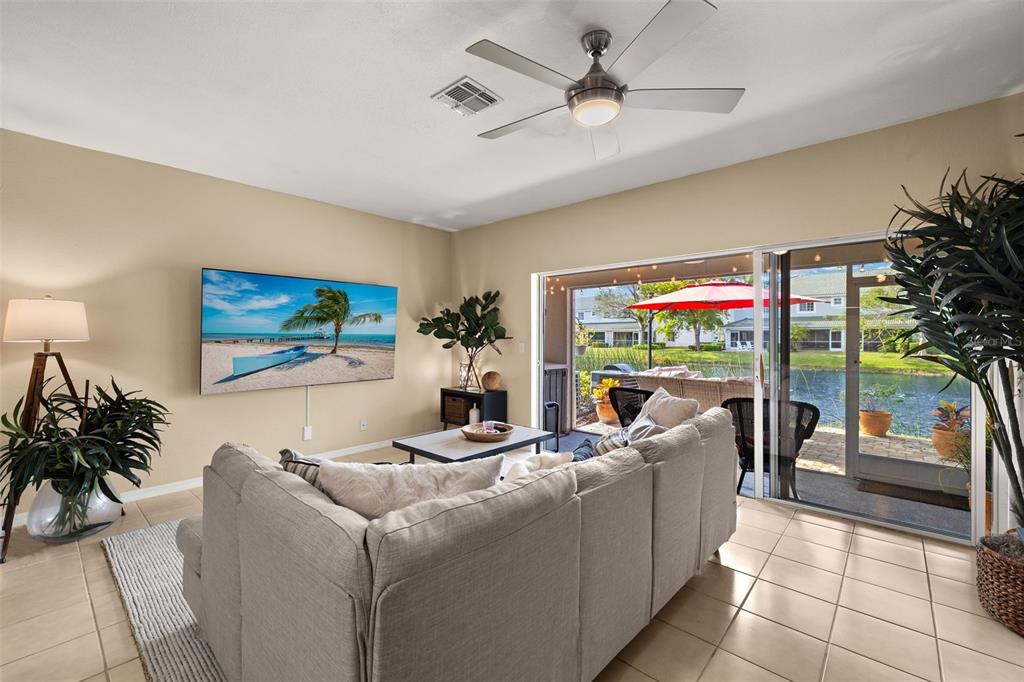Two story townhome with attached 1 car garage, 2 bdrm, 2.5 baths. move-in ready and waiting your personal touches. downstairs features bath, kitchen with pantry and overlooks an open concept living/dining area with beautiful lake view from your private screened lanai-perfect for bbq's and sunsets. lanai has been extended in may 2024. upstairs has master suite with double vanity sink, shower and his and her closets. guest bedroom has walk in closet, jack and jill bathroom with shower/tub with door to access den. den is lighted well with skylights and can be made into a 3rd bedroom. amenities include clubhouse, fitness center, resort style community pool, spa, childrens playground and picnic area. easy access to shopping, dining, top golf, lee county bike trail system, six mile cypress preserve, the twins stadium, red sox stadium, sw international airport, fort myers beach and beautiful sanibel/captiva islands & more!8238 PACIFIC BCH, FORT MYERS, FL 33966