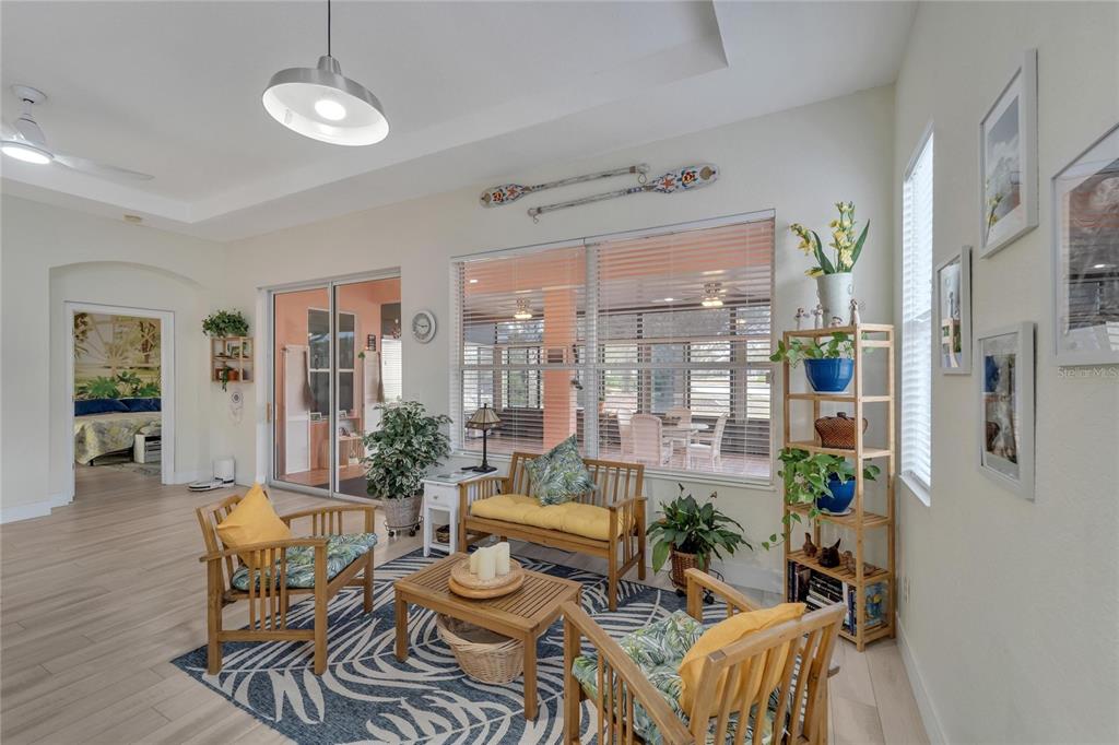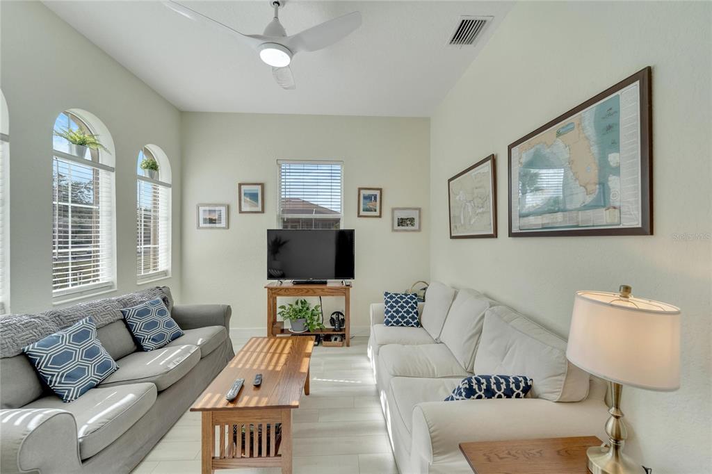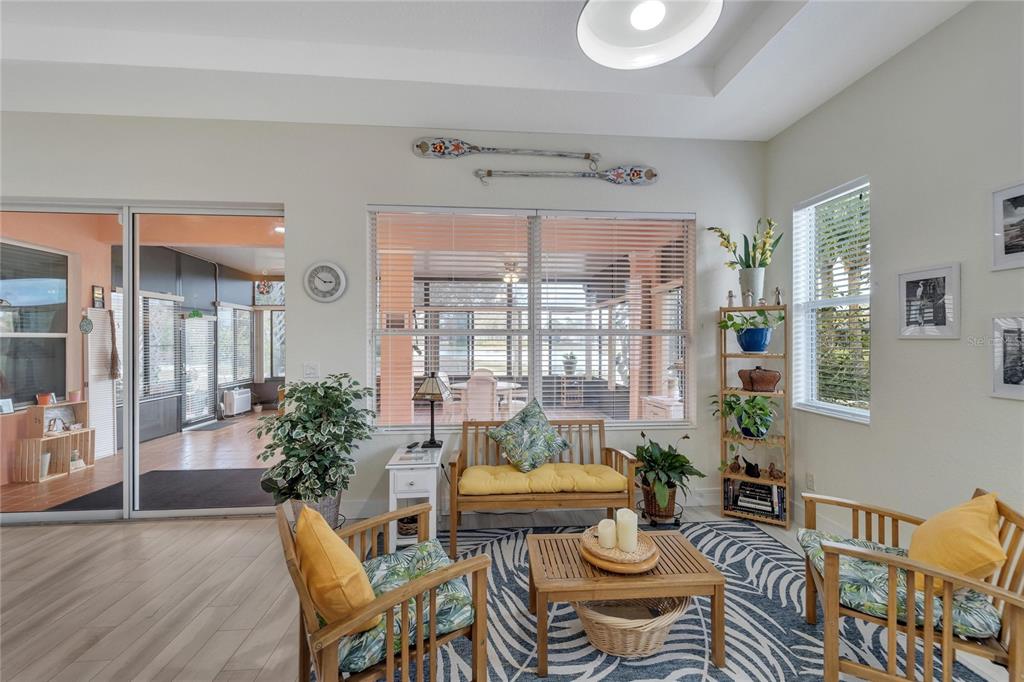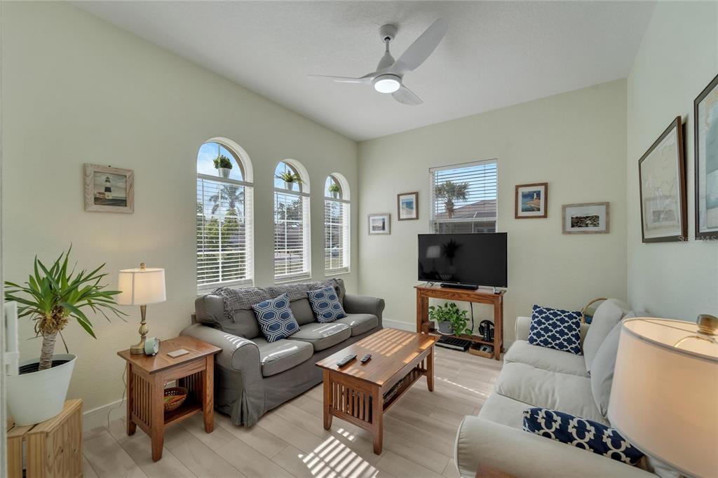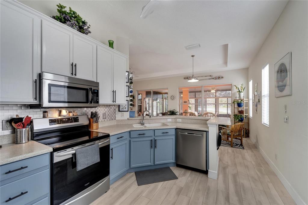Don’t miss out on the stunning water views from this cezanne model home located in the resort style renaissance section of sun city center. enter through the glass accented front door into the entryway with tray ceiling and beautiful new vinyl plank flooring that grace the entire home. this gorgeous house boast 3 bedrooms (one bedroom is an optional den), 2 full bathrooms, great room, large florida room and kitchen. the kitchen was updated in 2022 with new backsplash, stainless steel appliances, and renovated dual toned cabinets. the great room is open with the kitchen and glass sliders leading out to the 18 x 24 florida room overlooking one of the community ponds filled with wildlife. bonus screened in lanai. the home has been freshly painted, vinyl plank floorings installed throughout the home, new moldings, decorative ceiling fans and light fixtures and both bathrooms have renovated vanities and accent features. ac installed august 2022. 200 amp electrical 2022, water softener and purifier 2022. experience golf cart friendly sun city center with it’s clubhouses, 4 pools, fitness centers, tennis, pickleball, bocci ball, social halls, hobby rooms, billiards, card rooms, over 150 clubs and activities and so much more!824 REGAL MNR, SUN CITY CENTER, FL 33573