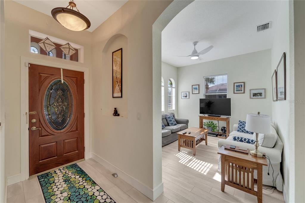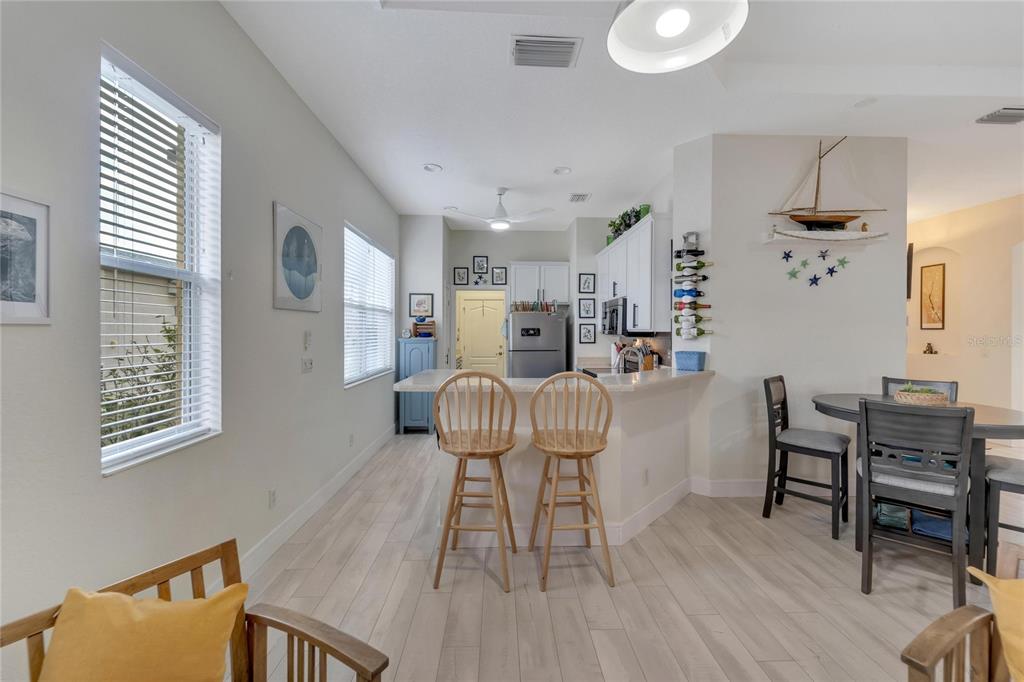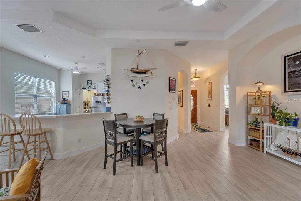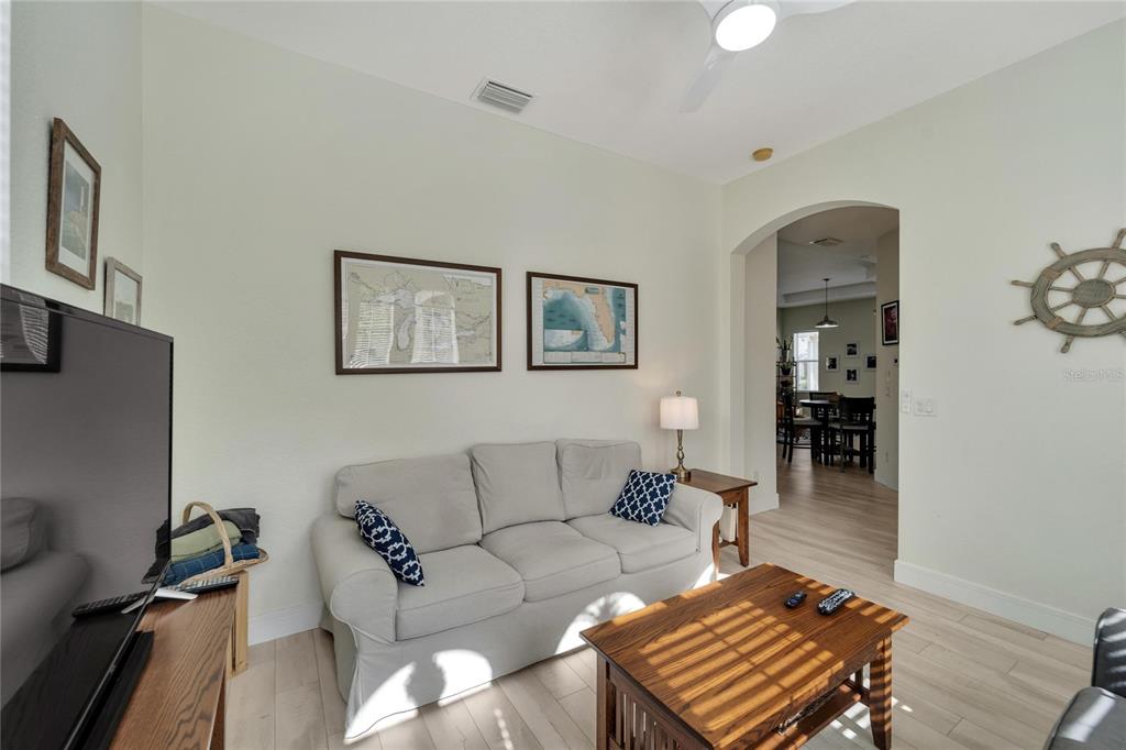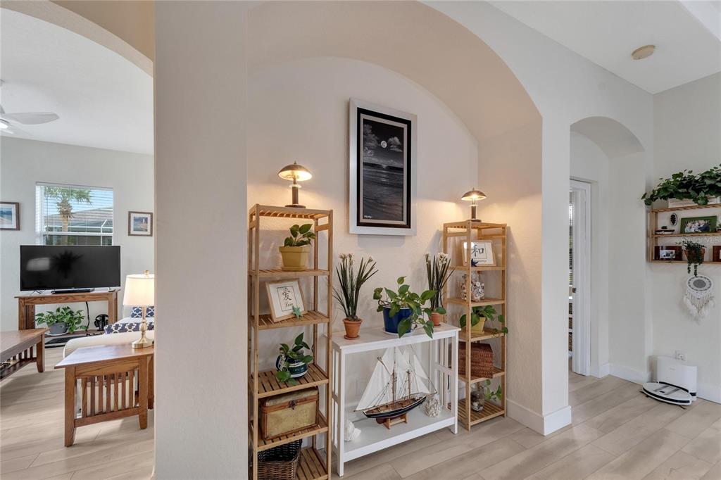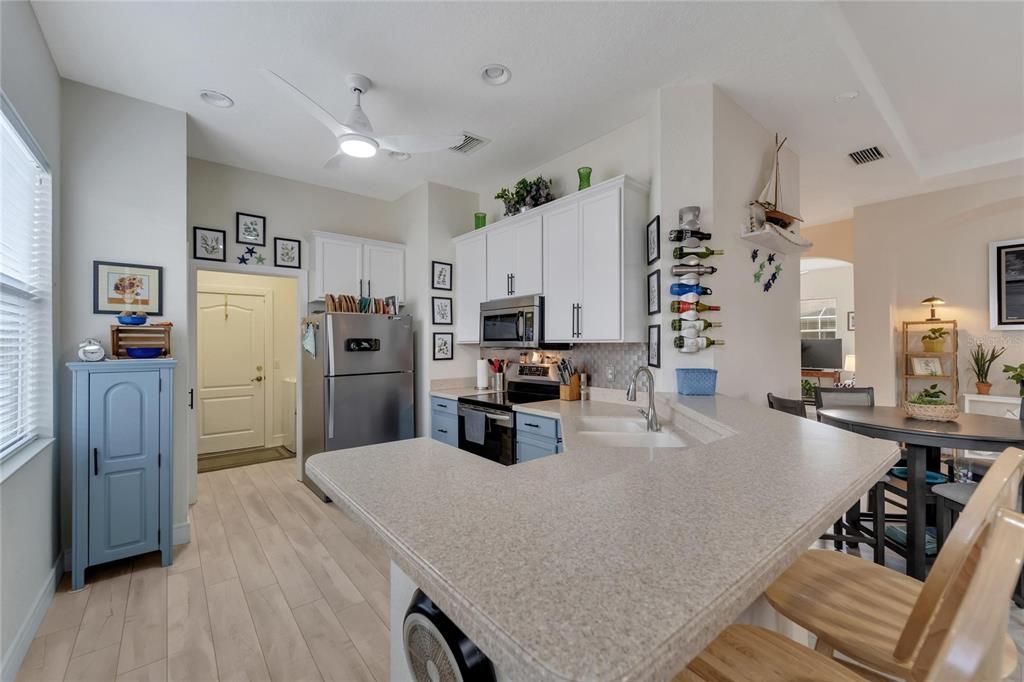 Don’t miss out on the stunning water views from this cezanne model home located in the resort style renaissance section of sun city center. enter through the glass accented front door into the entryway with tray ceiling and beautiful new vinyl plank flooring that grace the entire home. this gorgeous house boast 3 bedrooms (one bedroom is an optional den), 2 full bathrooms, great room, large florida room and kitchen. the kitchen was updated in 2022 with new backsplash, stainless steel appliances, and renovated dual toned cabinets. the great room is open with the kitchen and glass sliders leading out to the 18 x 24 florida room overlooking one of the community ponds filled with wildlife. bonus screened in lanai. the home has been freshly painted, vinyl plank floorings installed throughout the home, new moldings, decorative ceiling fans and light fixtures and both bathrooms have renovated vanities and accent features. ac installed august 2022. 200 amp electrical 2022, water softener and purifier 2022. experience golf cart friendly sun city center with it’s clubhouses, 4 pools, fitness centers, tennis, pickleball, bocci ball, social halls, hobby rooms, billiards, card rooms, over 150 clubs and activities and so much more!824 REGAL MNR, SUN CITY CENTER, FL 33573
