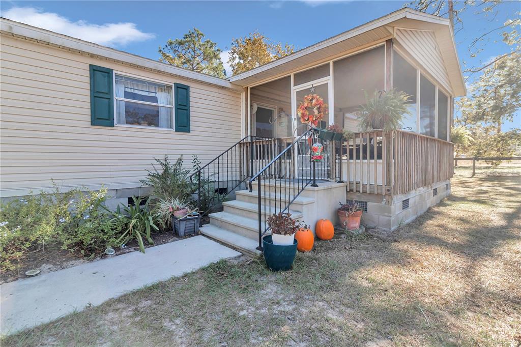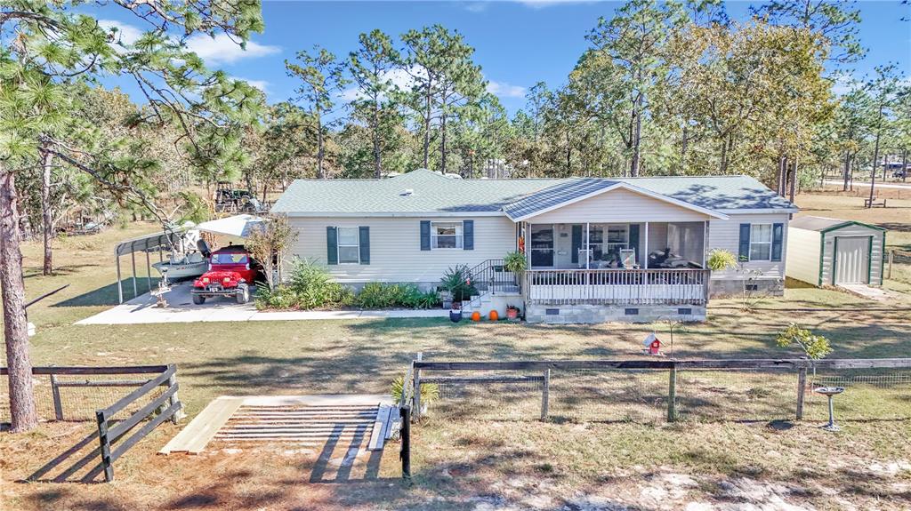 Looking for an immaculately well kept, private home on acreage with no hoa, flood zone or sandgnats?! this is it! my favorite spot in this home is the screen enclosed front porch which provides a view of the unbeatable sunsets and a quiet space to enjoy the dozens of varieties of birds eat their seed! the 3br/2ba farmhouse inspired mobile home sits on a fully fenced 4.36 acres and includes a 3 stall barn with round pen! there are many varieties of fruit trees too which include banana, fig, pecan, lemon, bartlett pear, peach, plum and apple! this home boasts 1620 sqft and upon entering you will notice the open floor plan, vaulted ceilings and beautiful farm views from almost every window! the large kitchen has an abundance of cabinets, stainless steel appliances a gas stove and plenty of counter space which is perfect for entertaining. the kitchen island is the center piece to this space and also provides additional seating. off the kitchen, there is a large laundry room which includes additional shelving and room for extra storage. the split floor plan provides privacy with the master suite located on it's own side of the home. the huge master suite has a walk in closet and private bathroom which includes a jetted soaking tub and walk in shower. the two bedrooms on the opposite side of the home have walk in closets too! step outside to the 3 stall shed row barn which is 20x35! the barn has three 11x11 stalls, concrete floors, electricity and an insulated roof! there is a lean to on the back side of the barn which can be used for additional stalls or storage. property also has a 10x12 shed for additional outside storage! the carport has a concrete floor and is connected to the home with a sidewalk! furniture is negotiable! roof 2020 property is within 20 minutes of dunnellon where you will find restaurants, grocery stores and the beautiful rainbow river. also a short 35 min drive to ocala where there is wec, countless options for food, dining, medical offices and more. walk in cooler next to barn does not convey.8251 SE 138, DUNNELLON, FL 34431